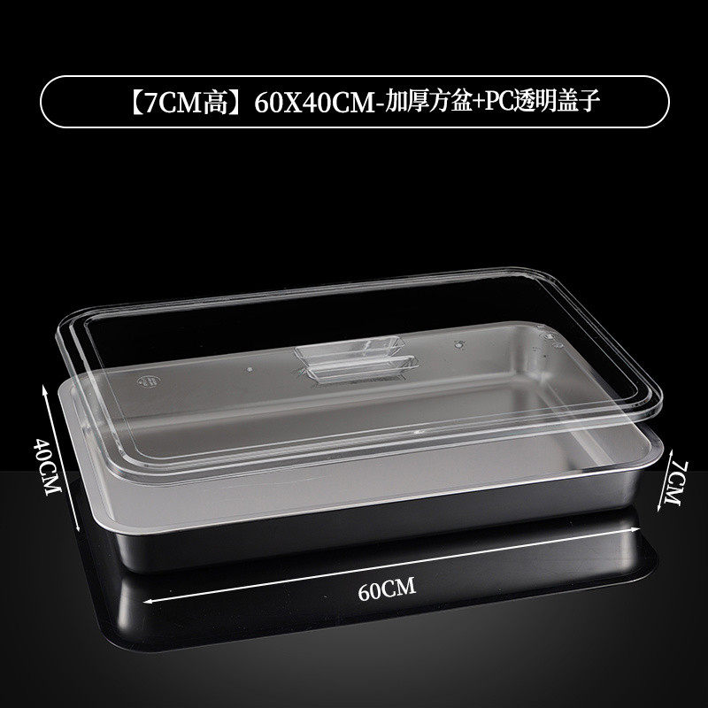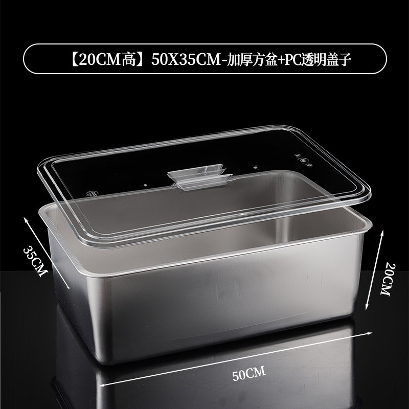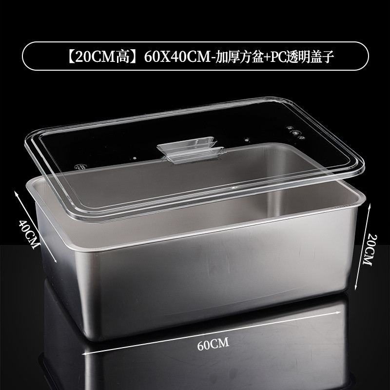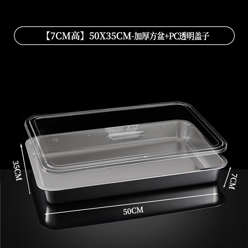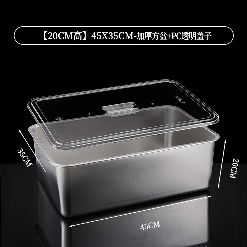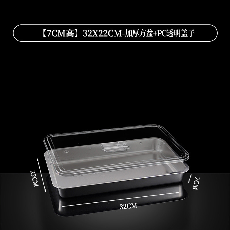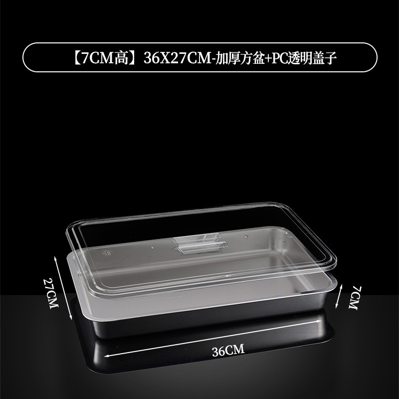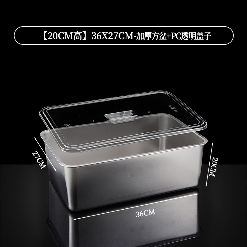 304 Stainless Steel Square Basin Rectangular Square Plate Buffet Basin Deepened Tray Fast Food Dish Basin with Transparent Lid Square Box