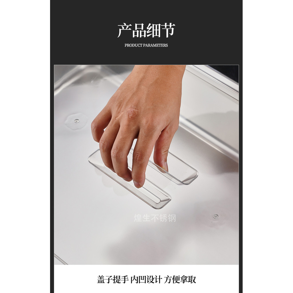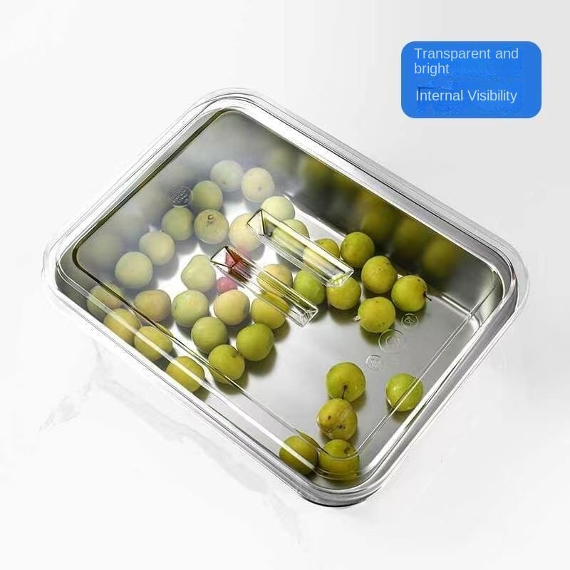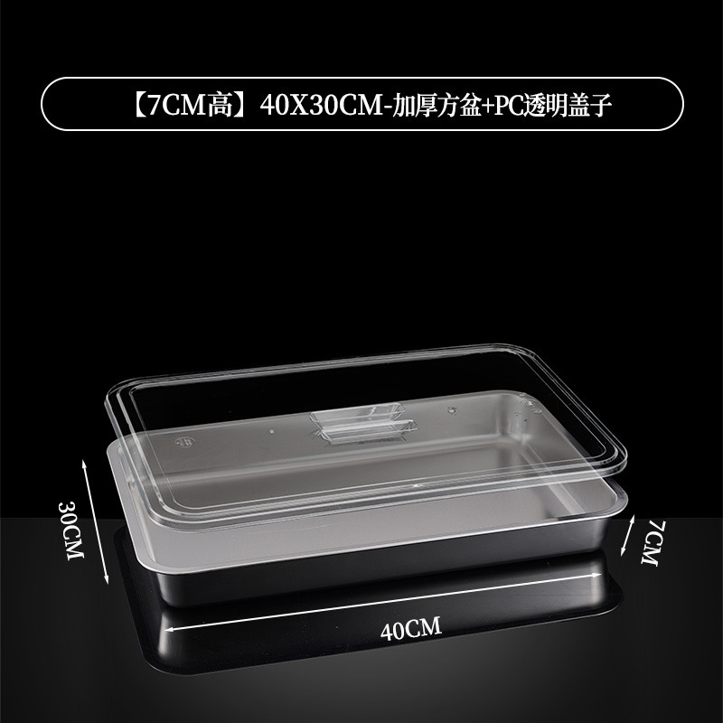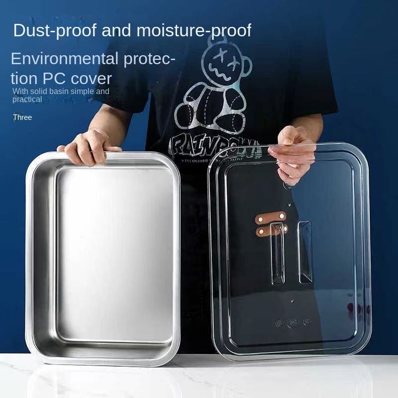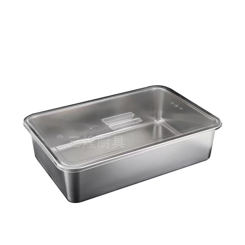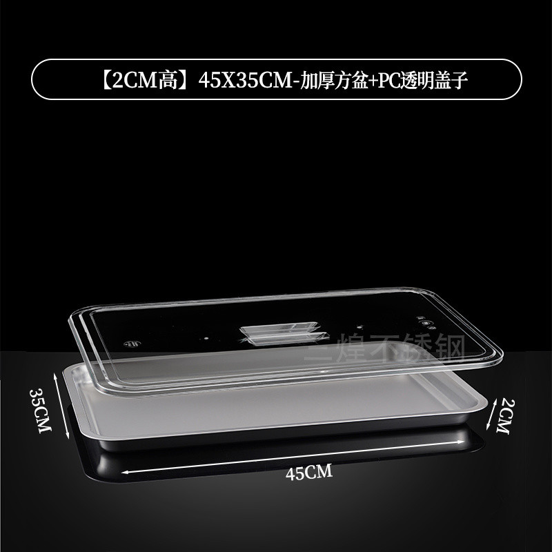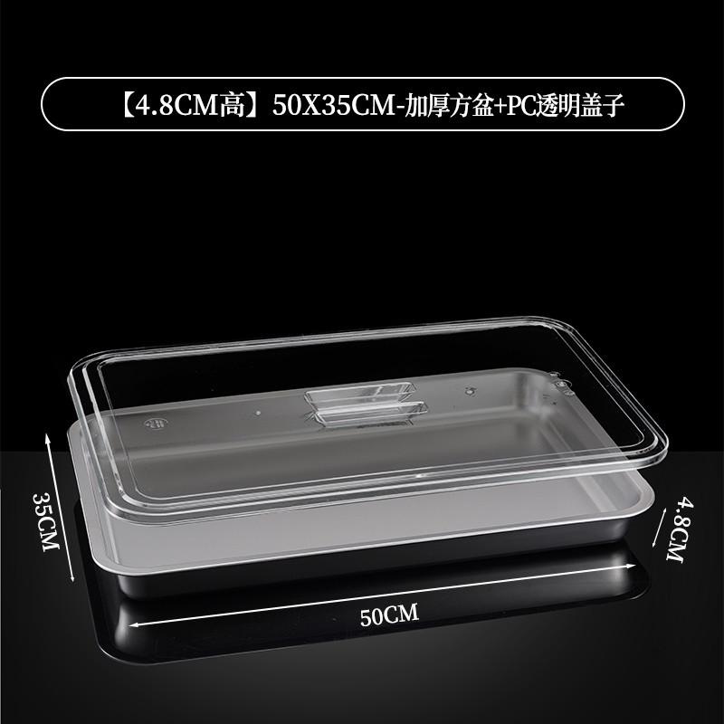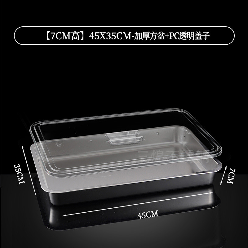 304 Stainless Steel Square Basin Rectangular Square Plate Buffet Basin Deepened Tray Fast Food Dish Basin with Transparent Lid Square Box
