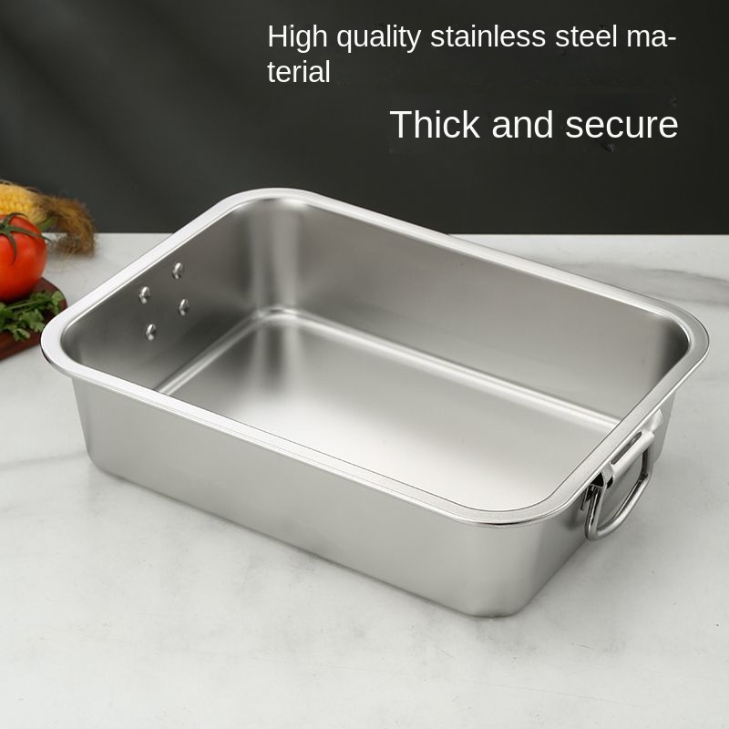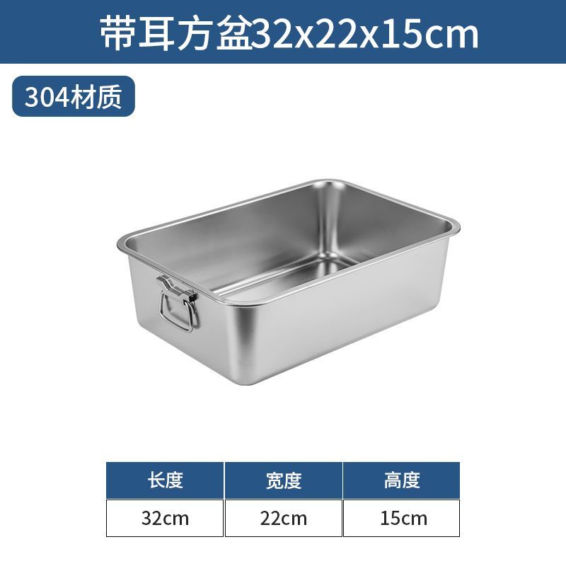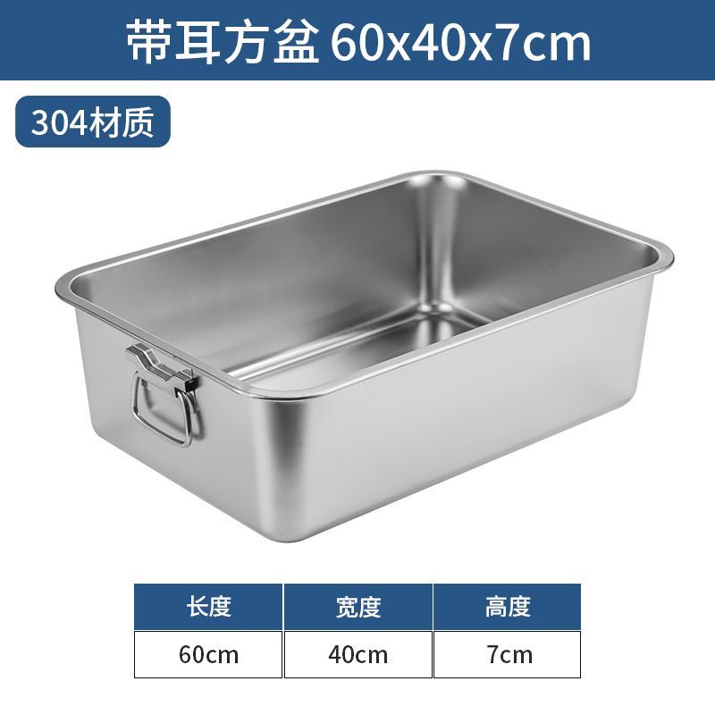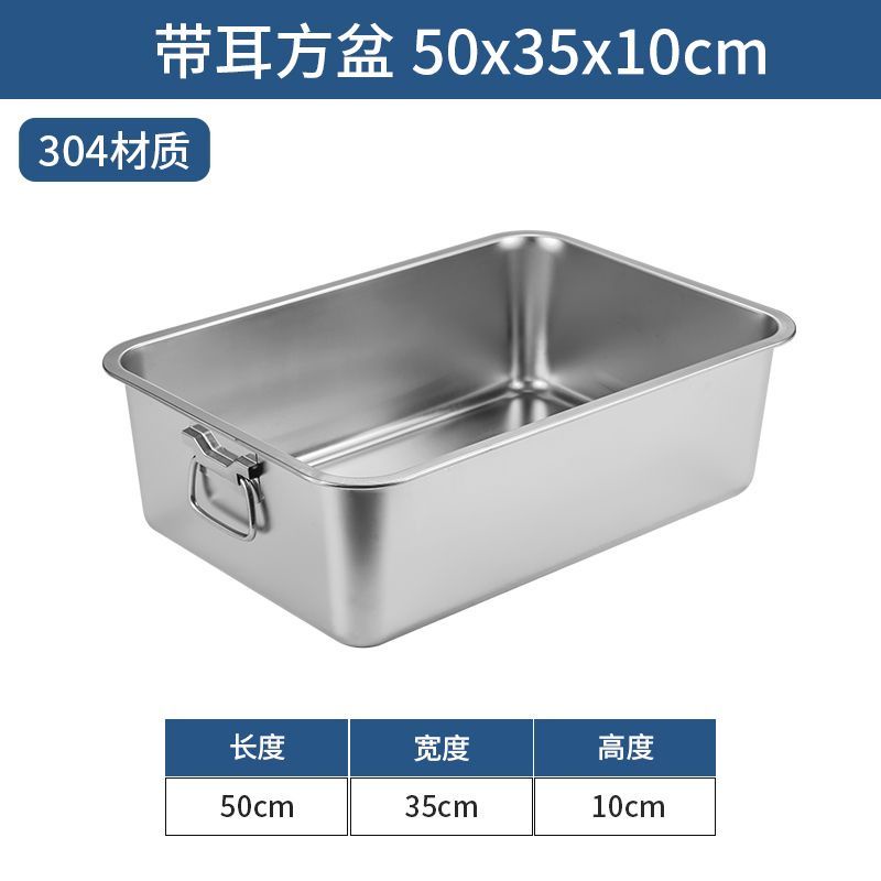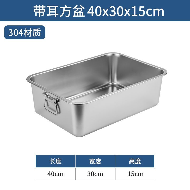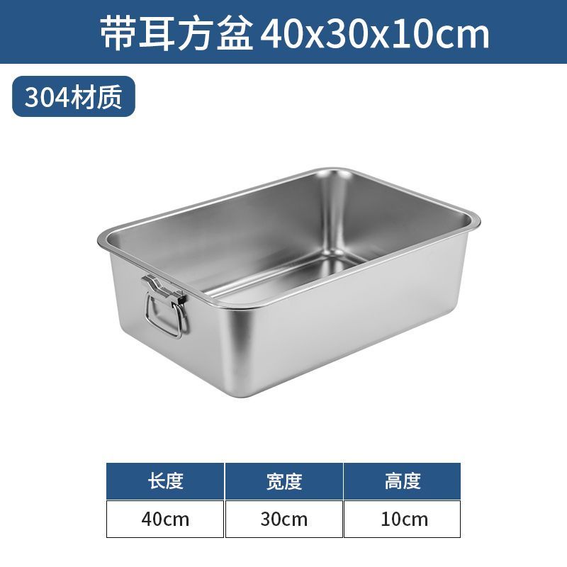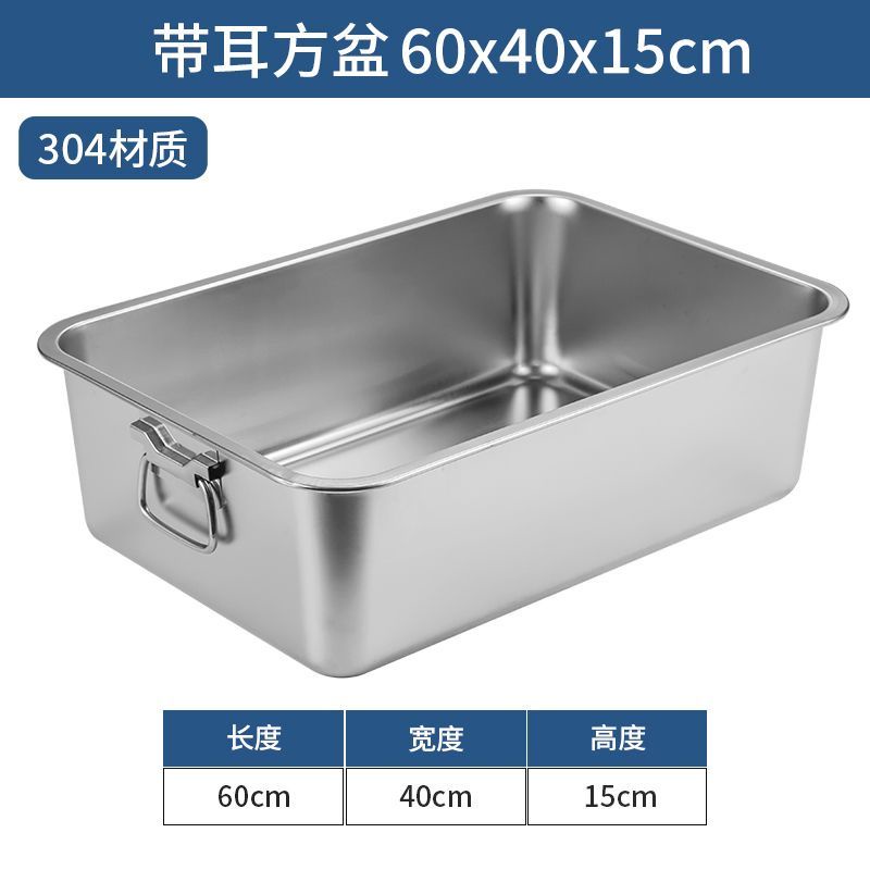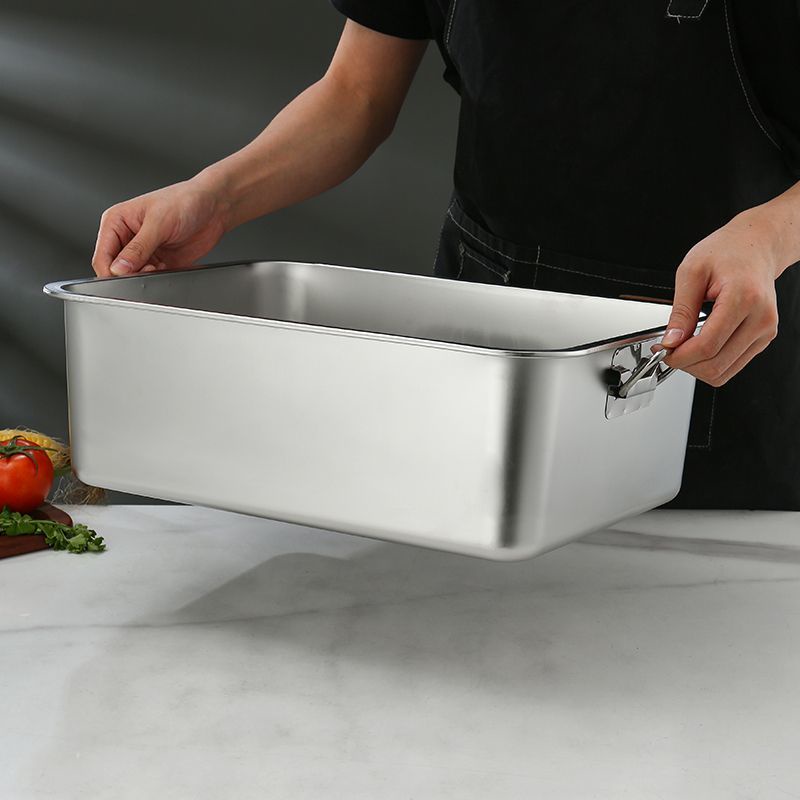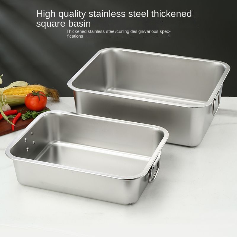 304 Stainless Steel Square Basin with Lid Rectangular Square Plate with Ear Handle Square Basin Commercial Extra Large Dining Basin Vegetable Bas