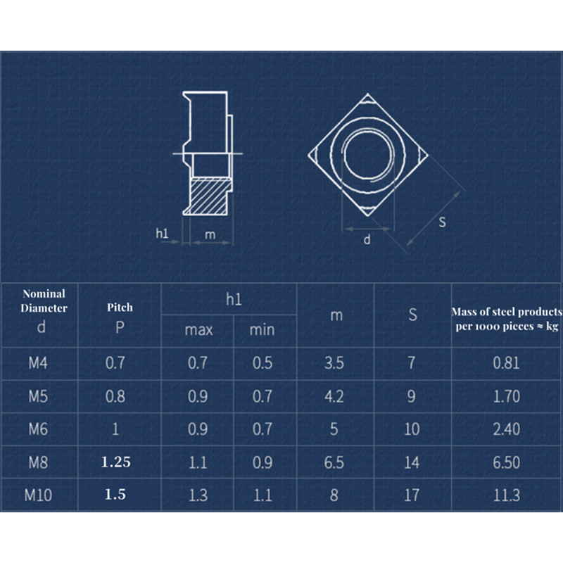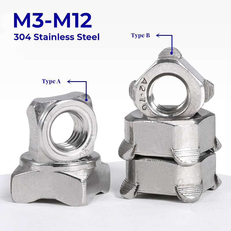 304 Stainless Steel Square Welding Nut M3 M4 M5 M6 M8 M10 M12 Type A / Type B Square Spot Welding Nuts Four Corner Welding Weld Nut