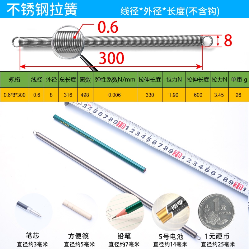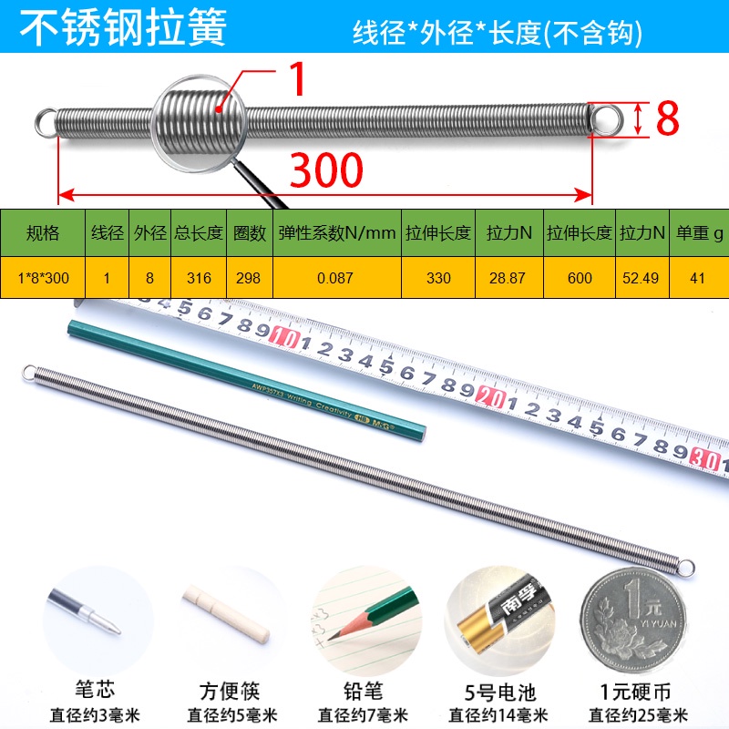 304 Stainless Steel Tension Spring Long Tension Spring Tension Spring Tension Spring Wire Diameter 0.3/0.4/0.5/0.6/0.7/0.8/1.0mm Customized Spring