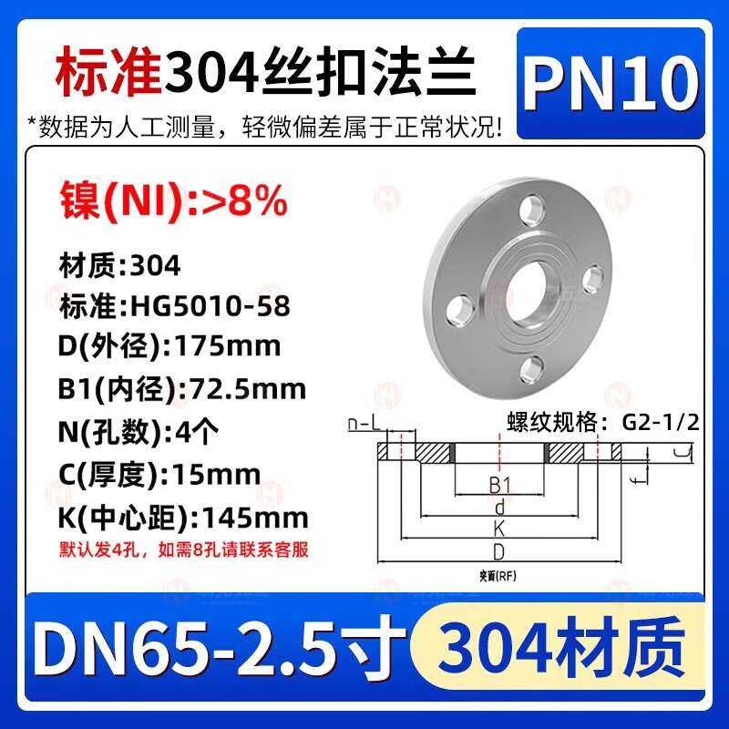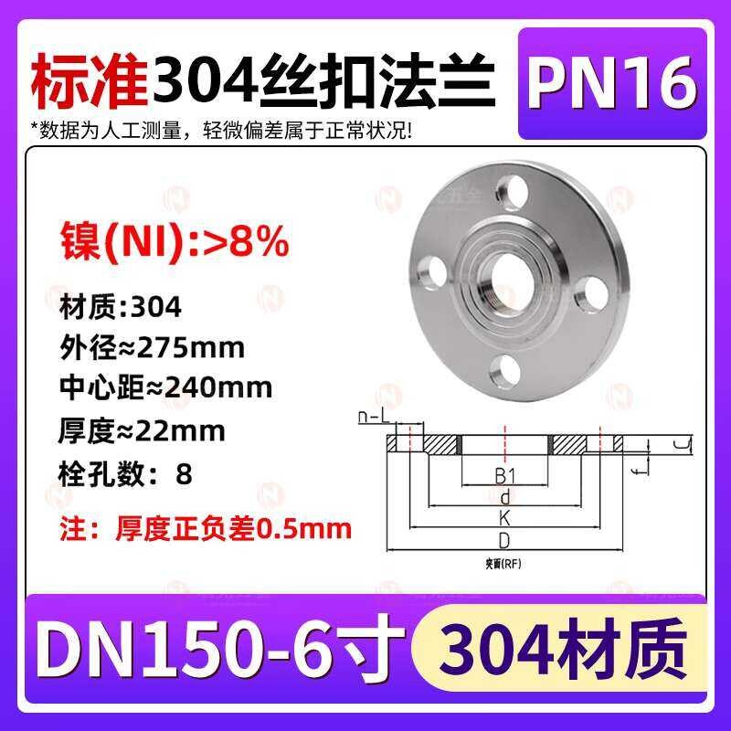 304 Stainless Steel Threaded Piece Internal Thread Plate Forged Flange PN 10kg