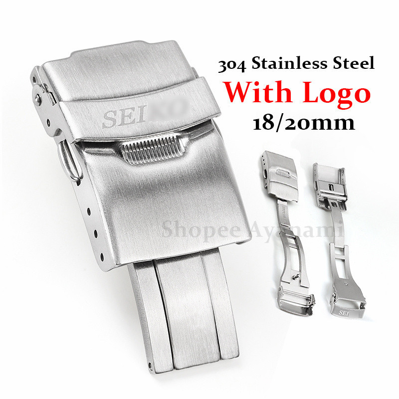 304 Stainless Steel Watch Buckle Clasp 18mm Metal Folding Buckle for Seiko Double Press Button Solid Clasp Watch Accessories