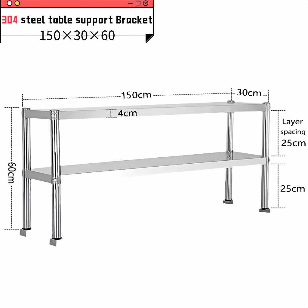 304 Stainless steel shelf easy to clean restaurant Double layer stainless steel kitchen table