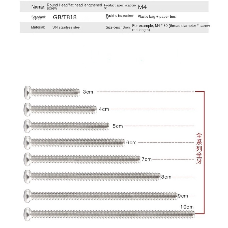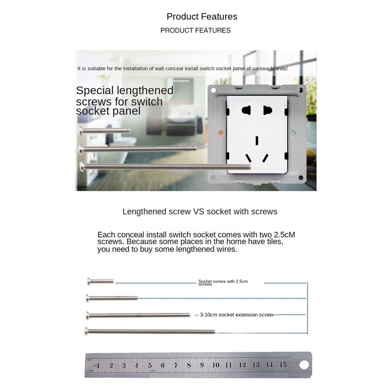 304 stainless steel extended switch socket panel screw round head / countersunk head screw M4 / 5 / 6 / 8 / 10 cm