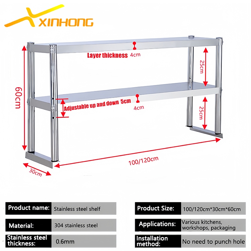 304 stainless steel kitchen rack organizer shelf 2 layer table kitchen counter top workbench