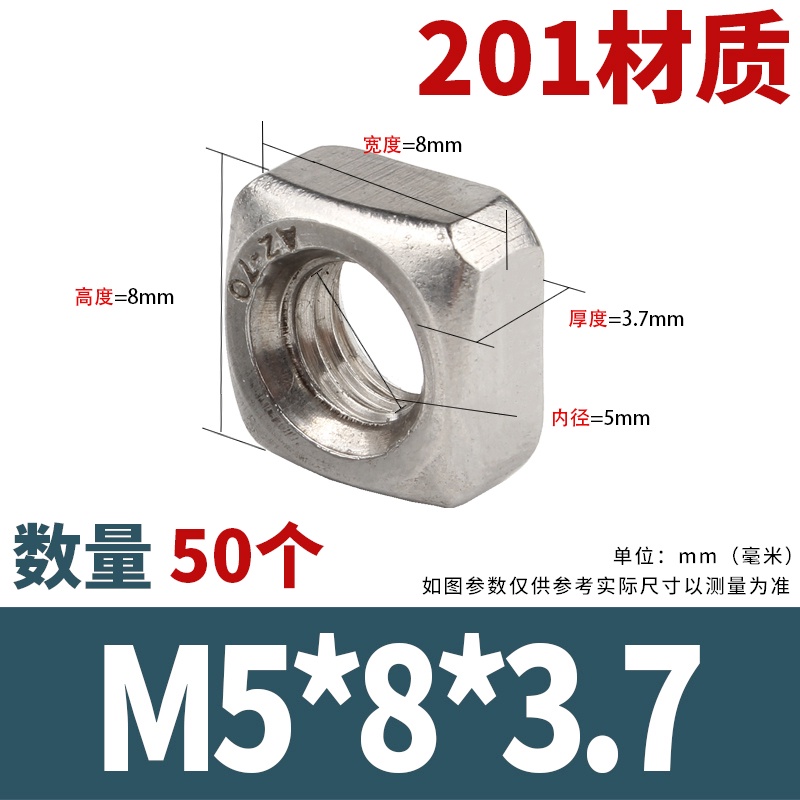 304 stainless steel square nut square nut square nut locking thin screw cap M3/M4/M5/M6/M8/M10