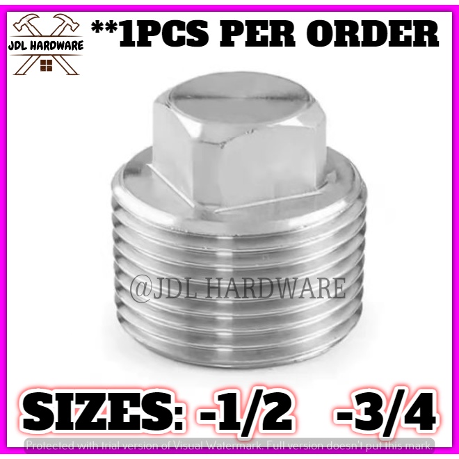 3049/3050 1PCS Stainless Steel Square Head Cap Fittings Plug Male Thread Cap (1/2" & 3/4")
