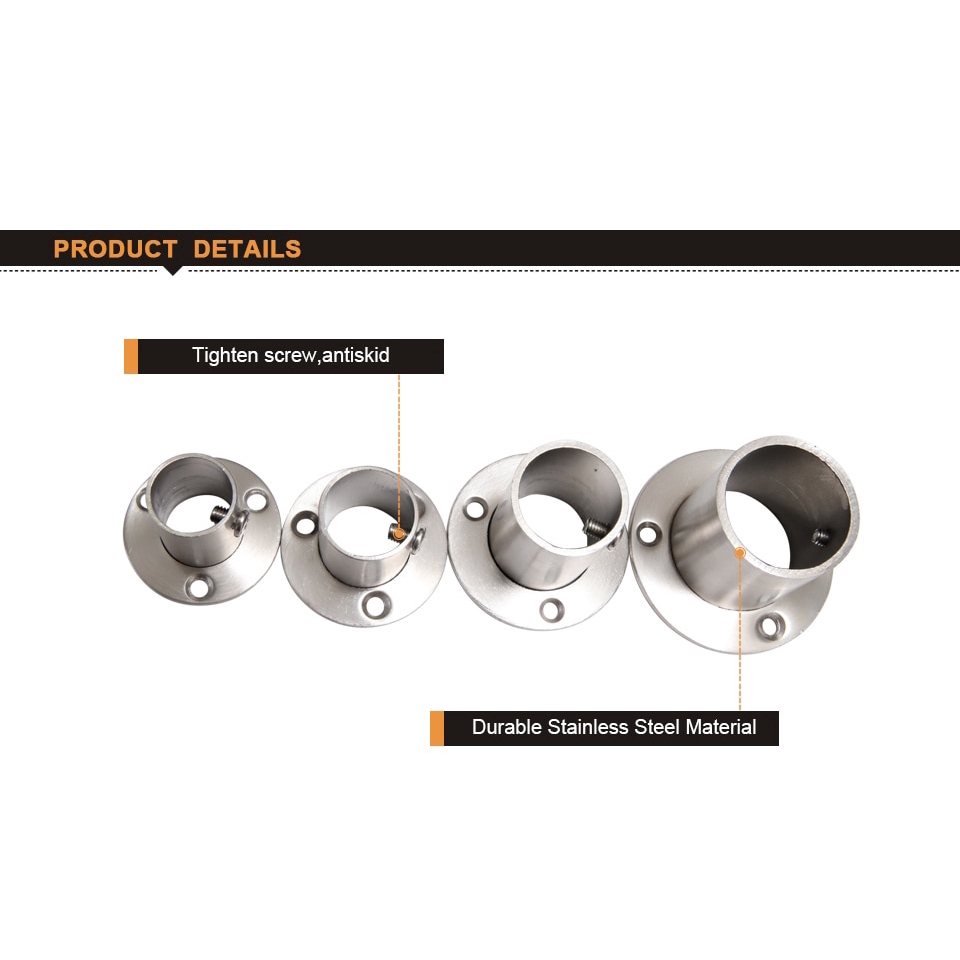 304Stainless Steel Flange Pipe Bracket 19/22/25/32mm Hanging Clothes Rod Seat Hanger Flange Bracket Closet Rod Pipe Bracket