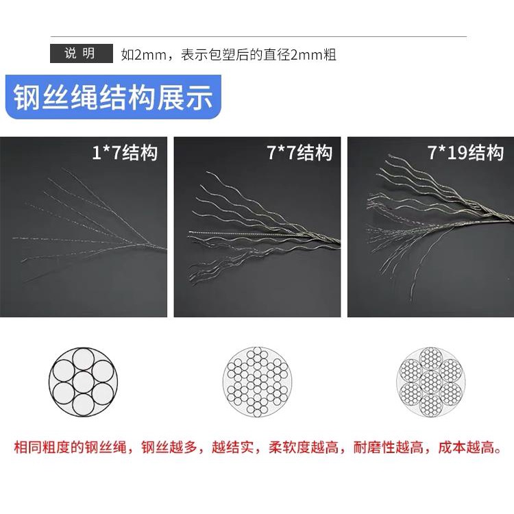 304Stainless Steel Plastic Coated Clothesline Wire Rope Red and BlackDIYHanging string Air Clothes Quilt for Greenhouse