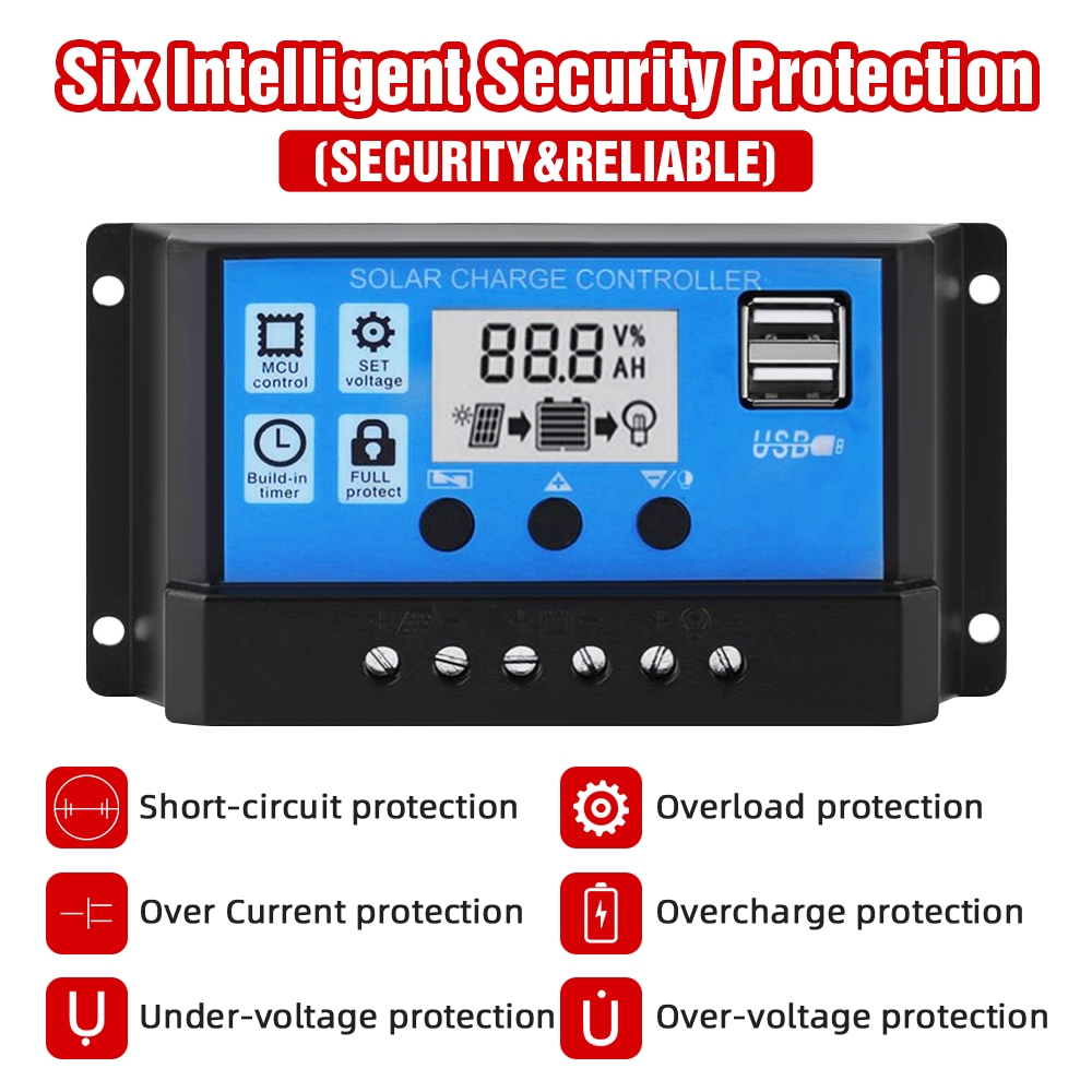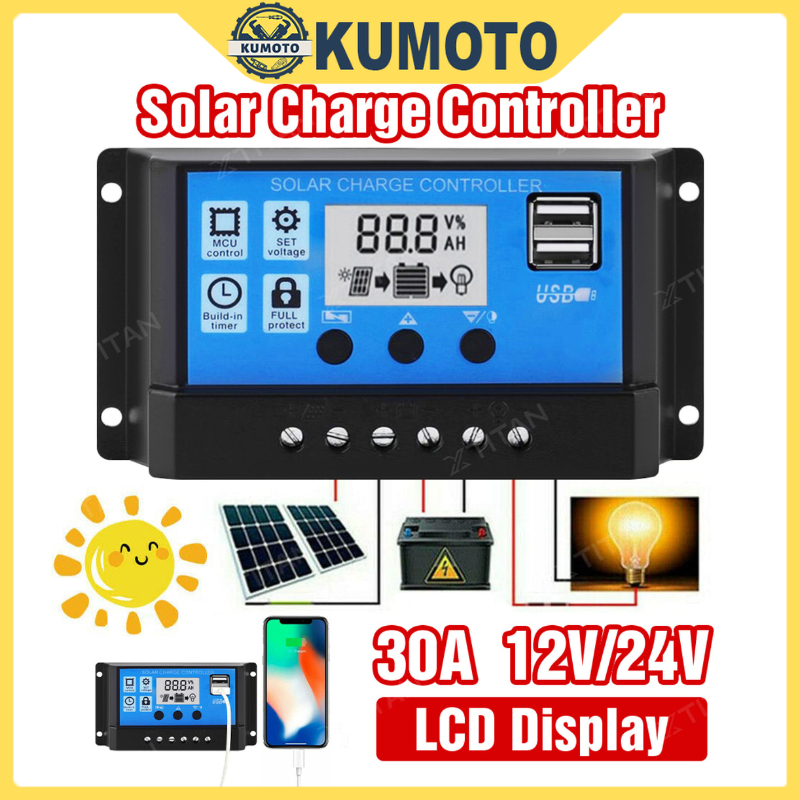 30A PWM 12/24V Solar Panel Regulator Charge Controller LCD Display solar battery charger USB