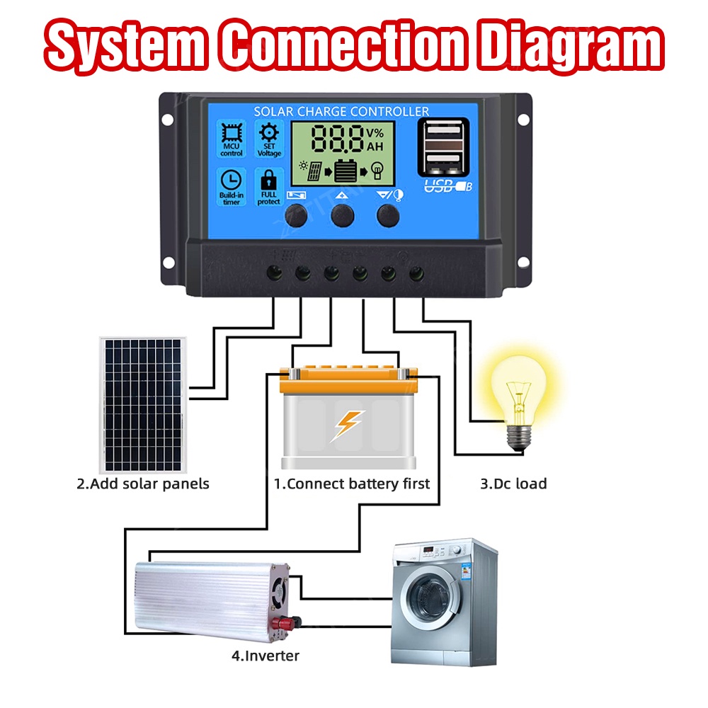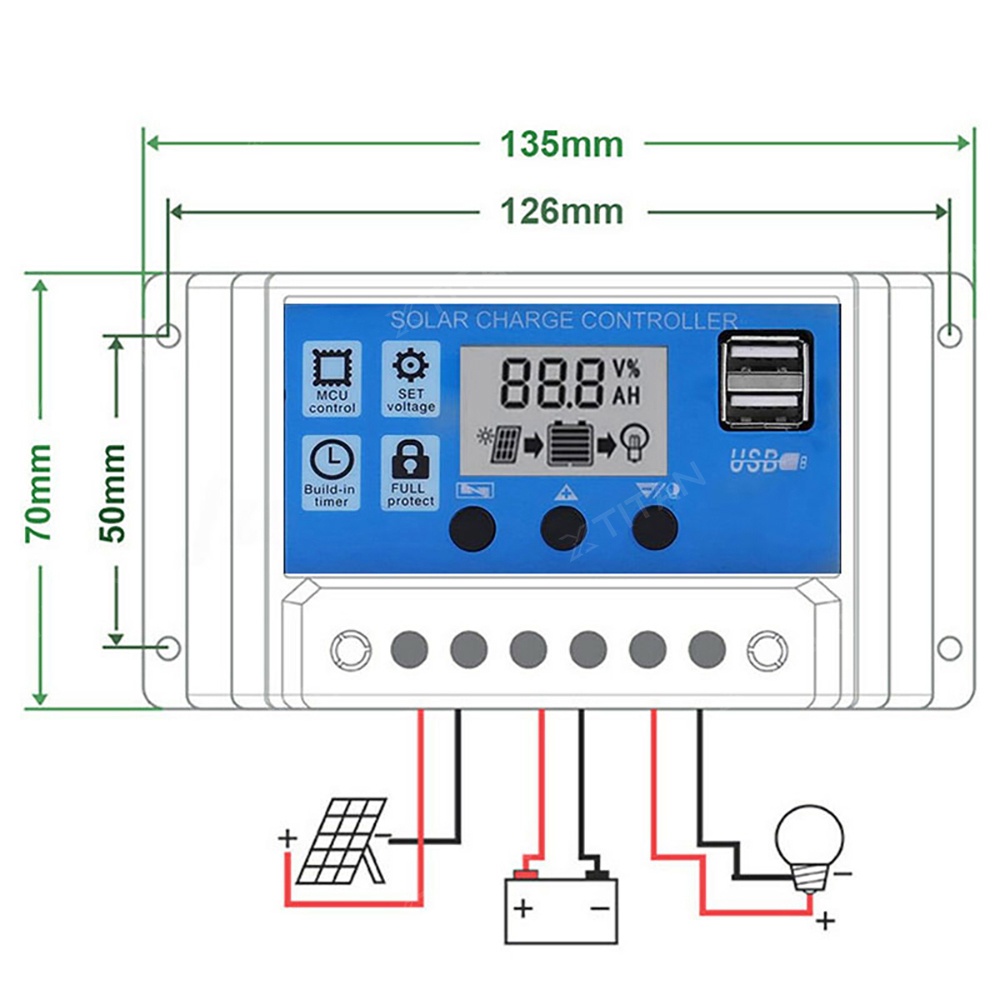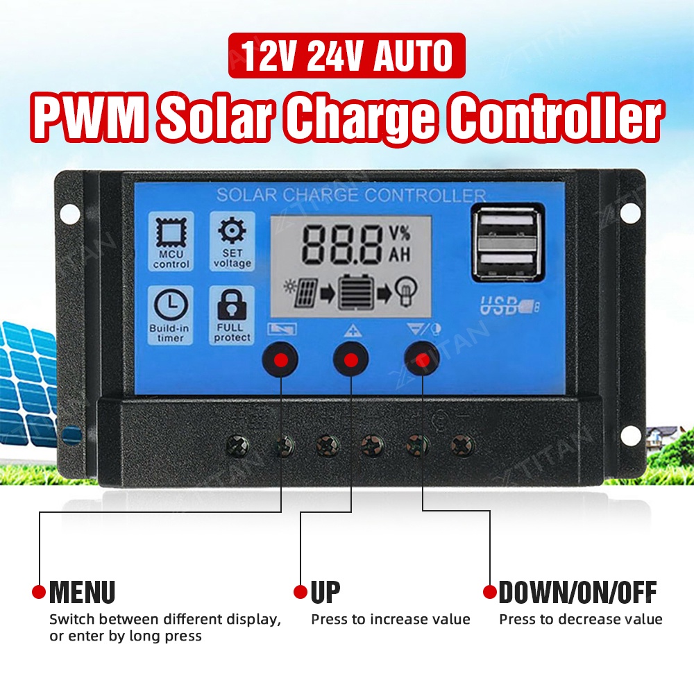 30A PWM 12V/24V Solar Panel Regulator Charge Controller Solar Battery Charger LCD Display Solar Panel Charger Controller Battery Regulator Dual USB Charger LCD Display