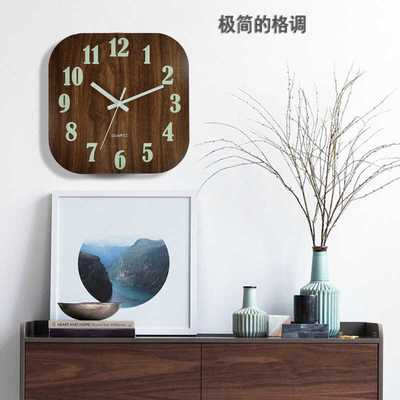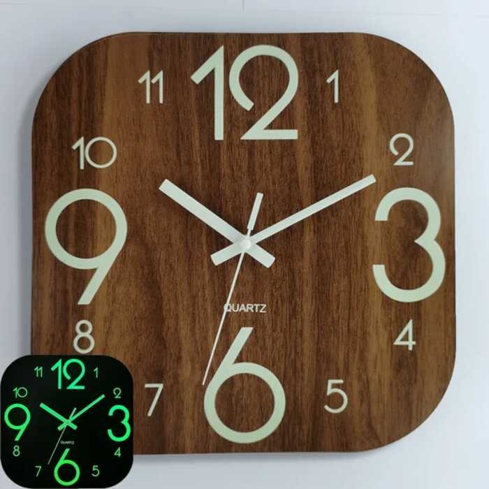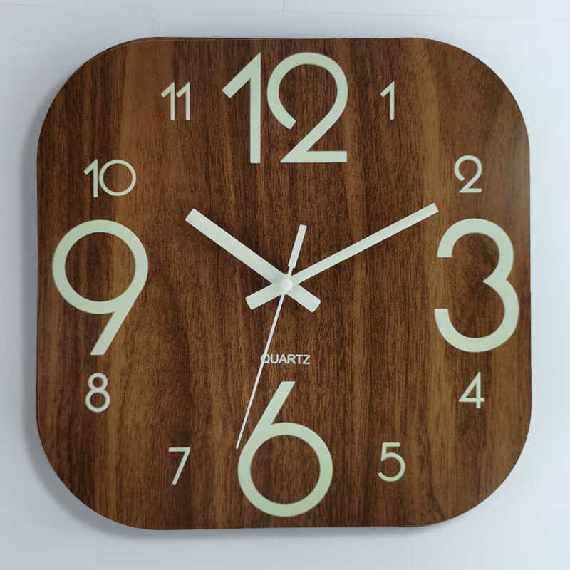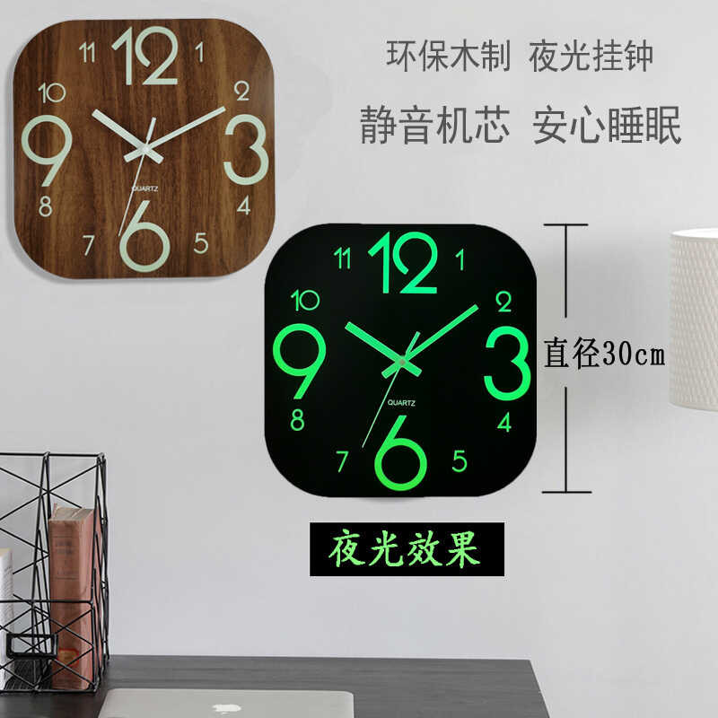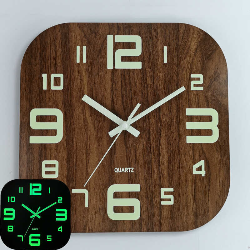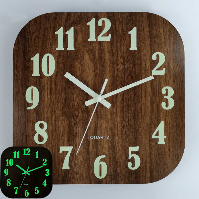 30Cm 0 Squar Woodn Silnt Clock MDF Wood Grain Luminous Crativ Fluorscnt Wall Cloc Horlog 5 D 3Cm