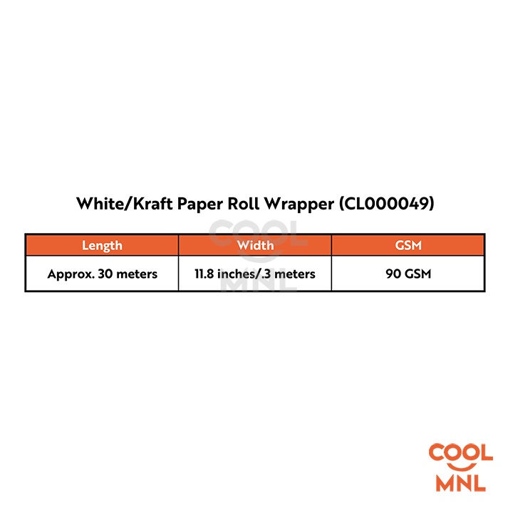 30M White/Kraft Paper Roll Wrapper 11.8" width