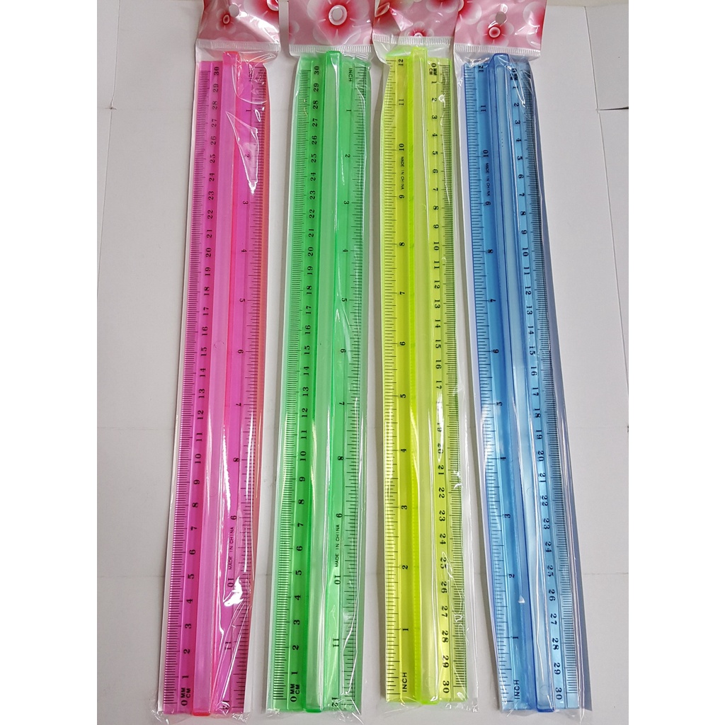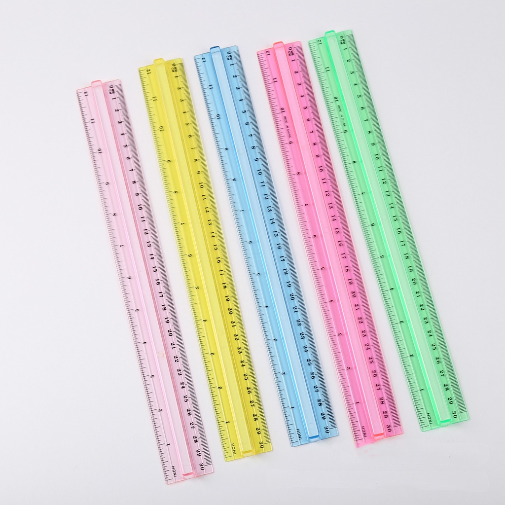 30cm - 12 Inches Transparent Colored Plastic Ruler with Handle (1pcs)