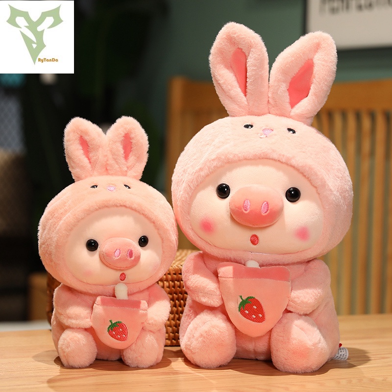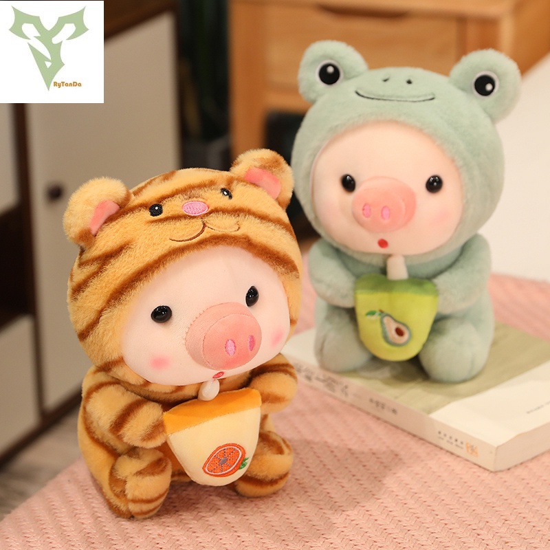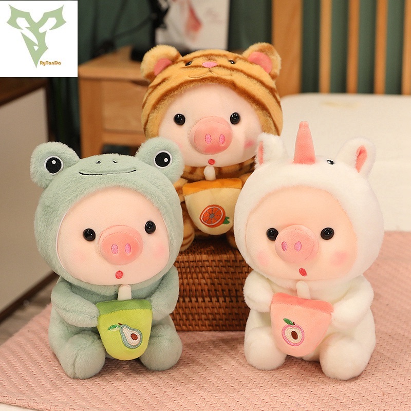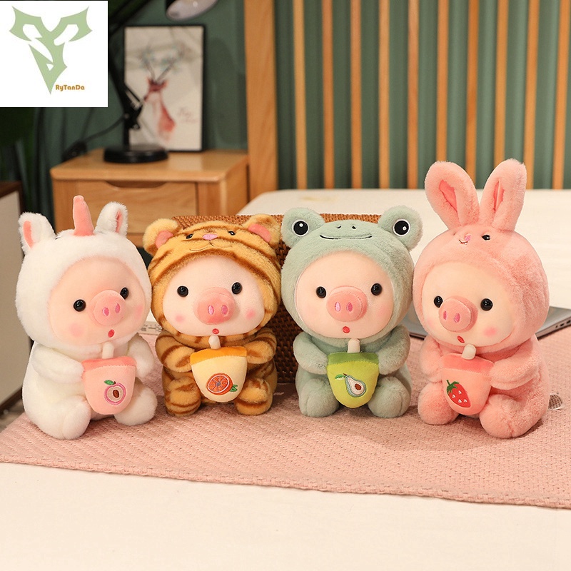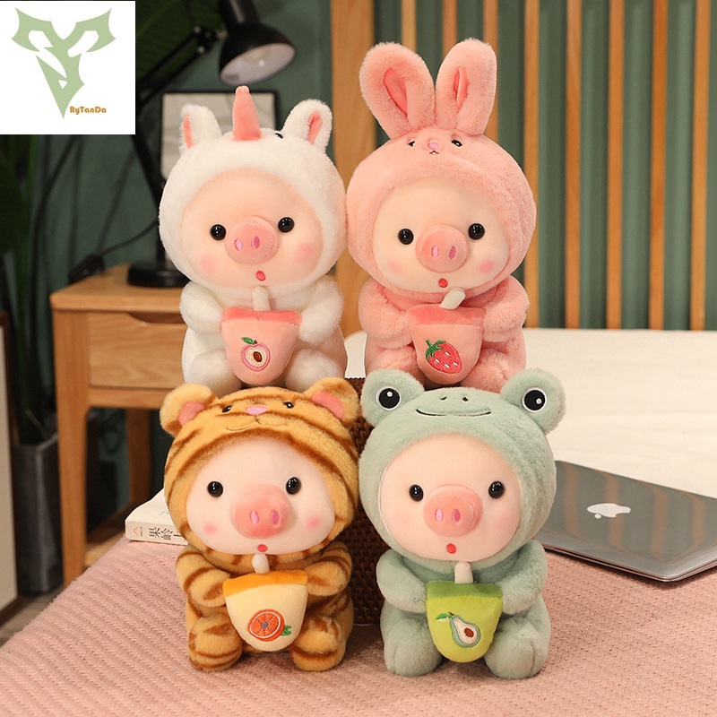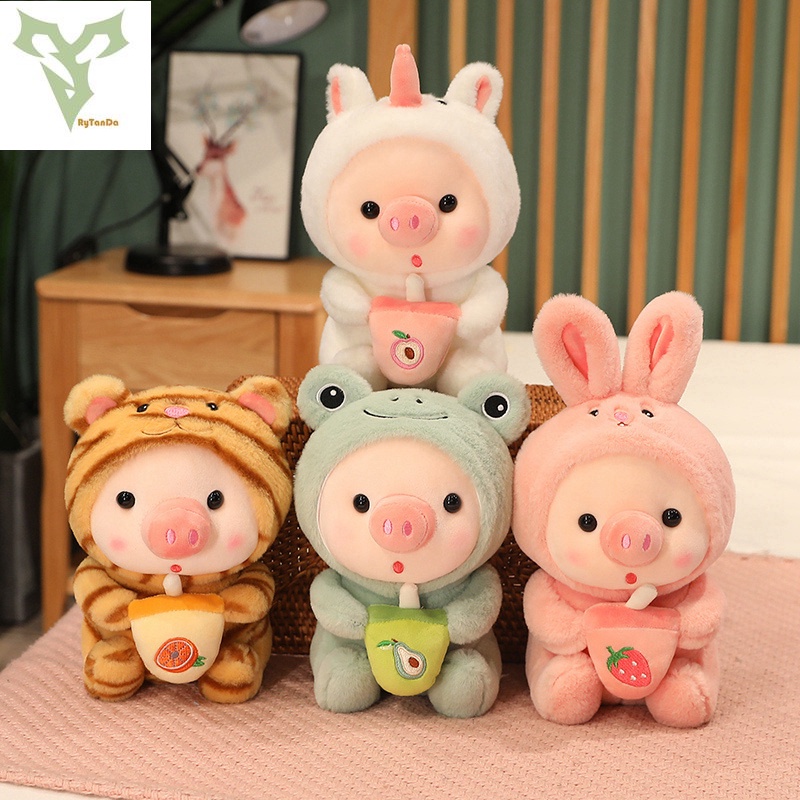 30cm Boba Tea Plushies Bubble Tea Plush Pillow Pig Boba Plush Piggy Pink Bunny Rabbit Tiger Unicorn Cartoon Animals Milk Tea Pig Plush Toy Rag Doll Children's Sleeping Pillow Stuffed Gifts