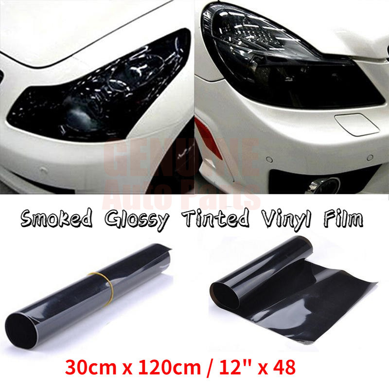 30cm x 120cm 12" x 48" Smoked Glossy Tinted Vinyl Film Car Wrap for car Headlights Tail Lights glossy black