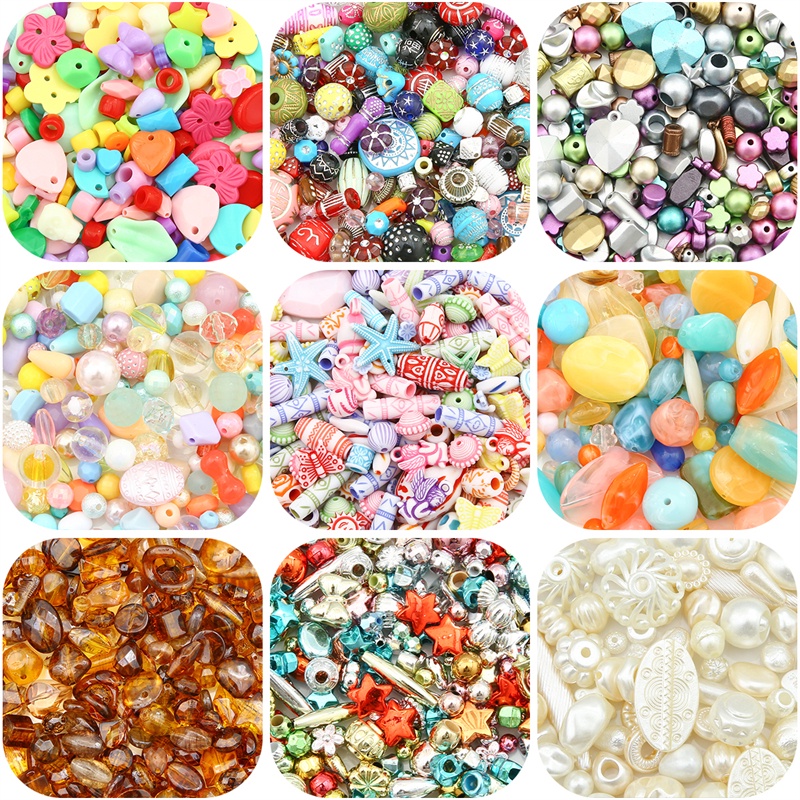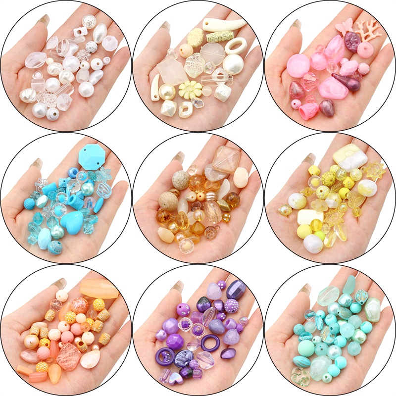 30g/bag Mixed Color Different Shapes Plastic Acrylic Beads Charms for Necklace Bracelet Cellphone Strap Making Handmade DIY Jewelry