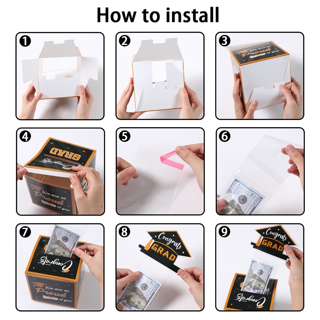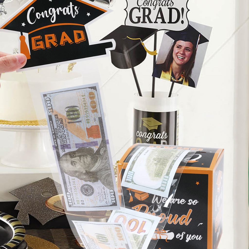 30pcs Black Gold Happy Graduation Money Box Graduation Gift Pull-Out Cash Surprise Box For Friend Class Of 2025 Graduation Party Needs Congrats Graduation Decoration Set
