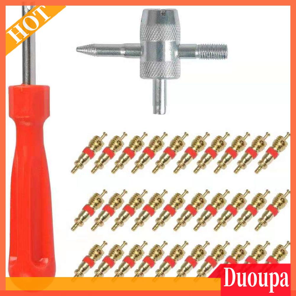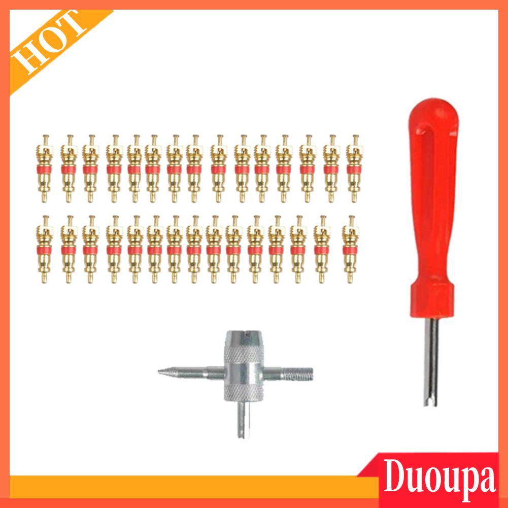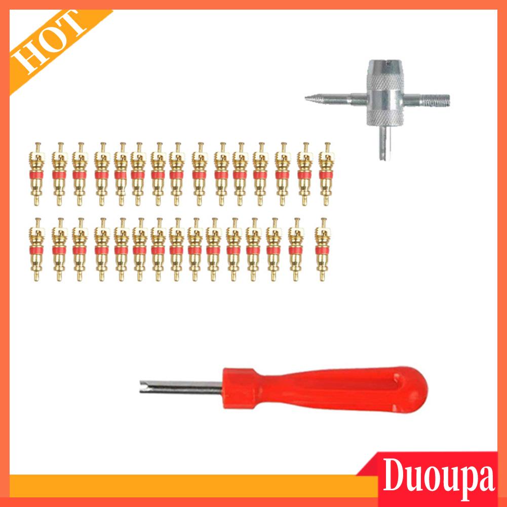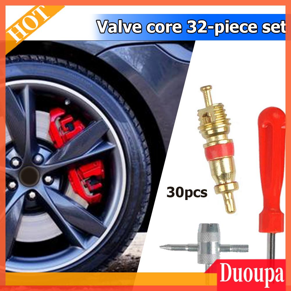 30pcs Brass Valve Cores with Car Bike Tire Valve Core Remover + 4 Way Tool