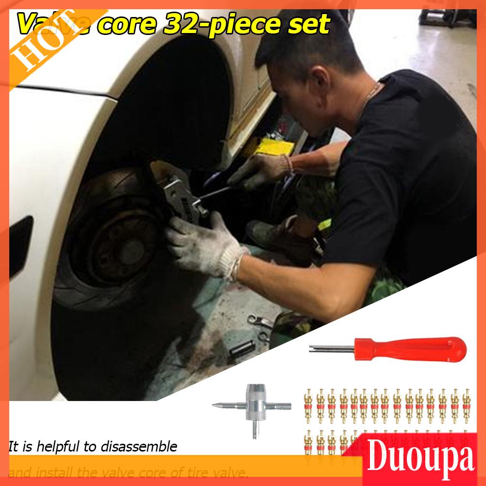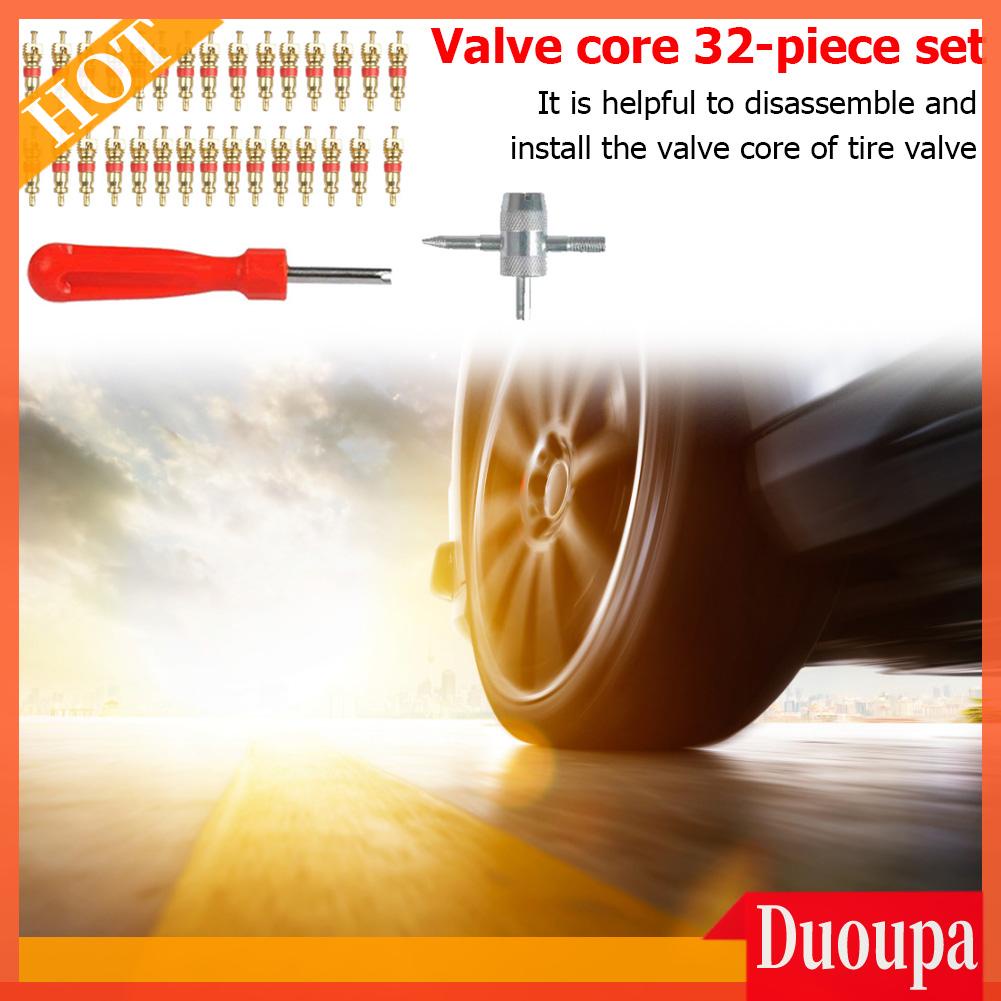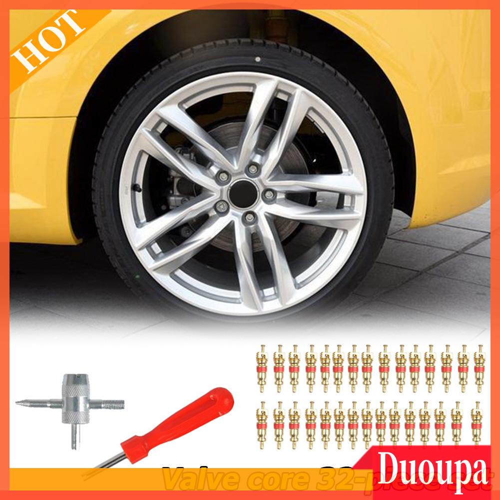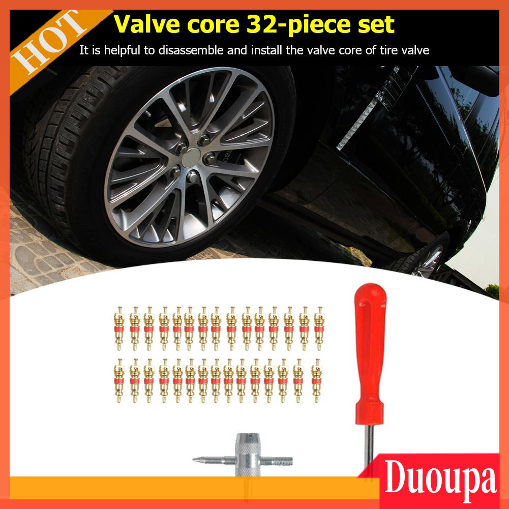 30pcs Brass Valve Cores with Car Bike Tire Valve Core Remover + 4 Way Tool