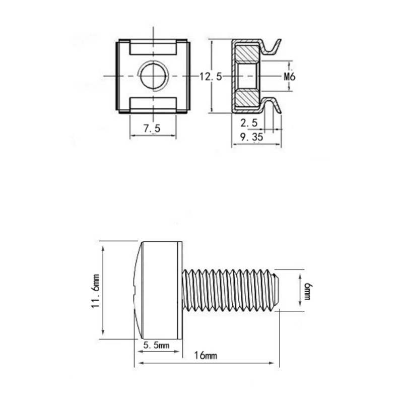 30pcs M6*16mm Cage Nuts Server Rack Mount Cage Screwnuts for Server Cabinet, Server Shelves Mounting