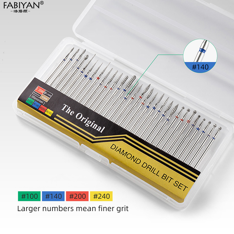 30pcs Russian Nail Diamond Drill Bit Set 2.35mm Diameter For Most Electric Cuticle Care Diamond Bits Manicure Drill