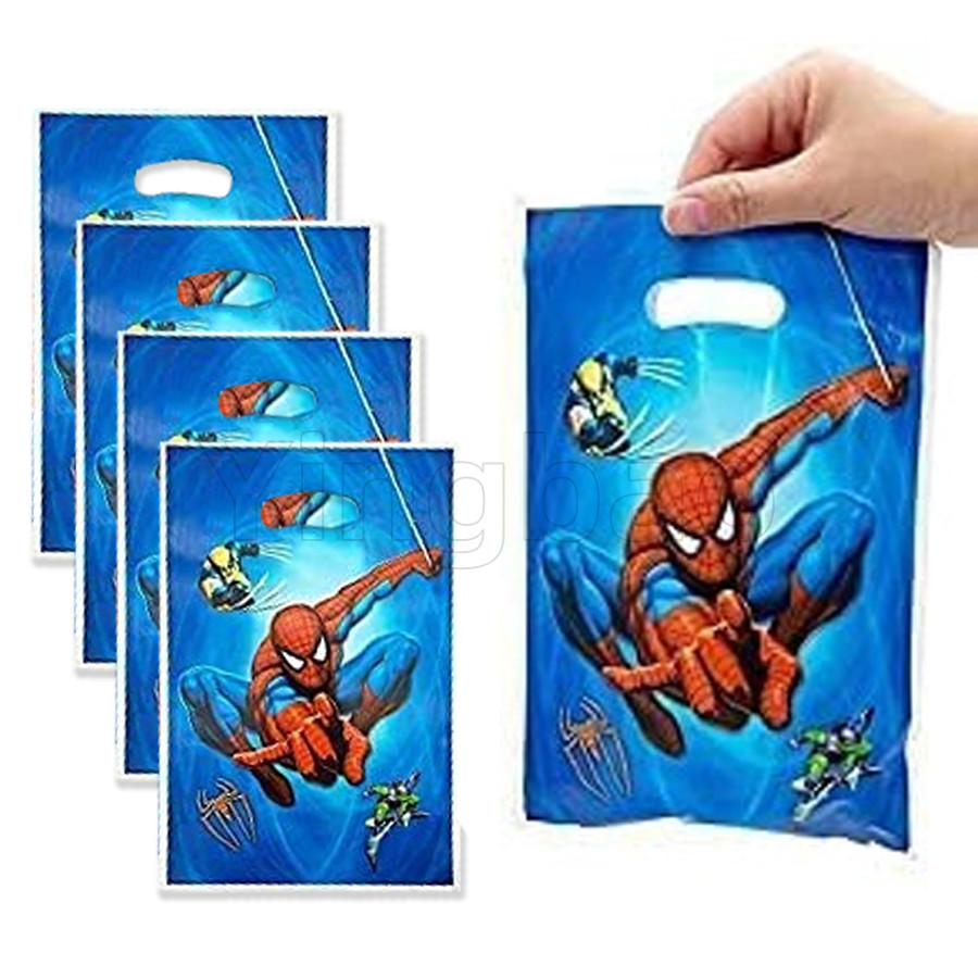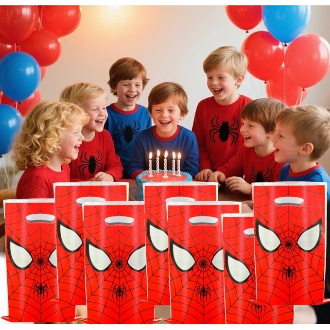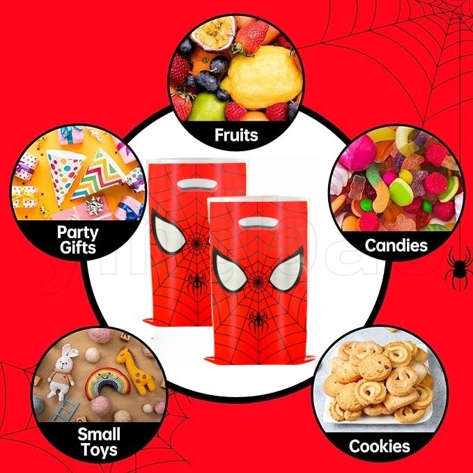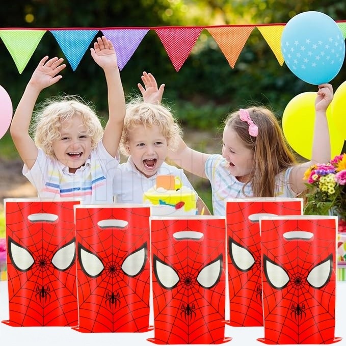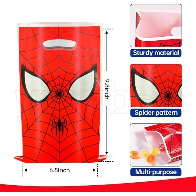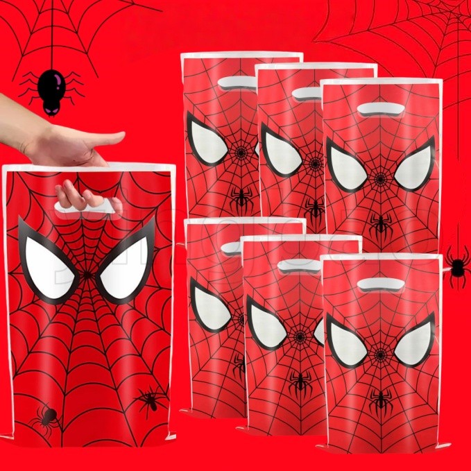 30pcs Spiderman Birthday Party Gift Bags,Plastic Spider Web Printed Treat Bags with Handles,Goodie Candy Party Favor Bags for Kids