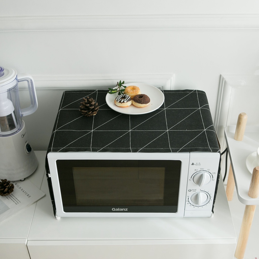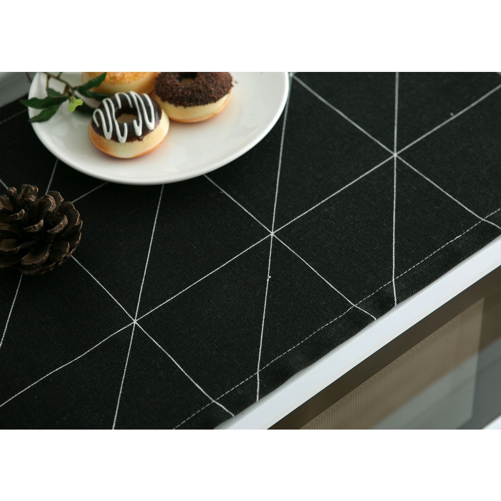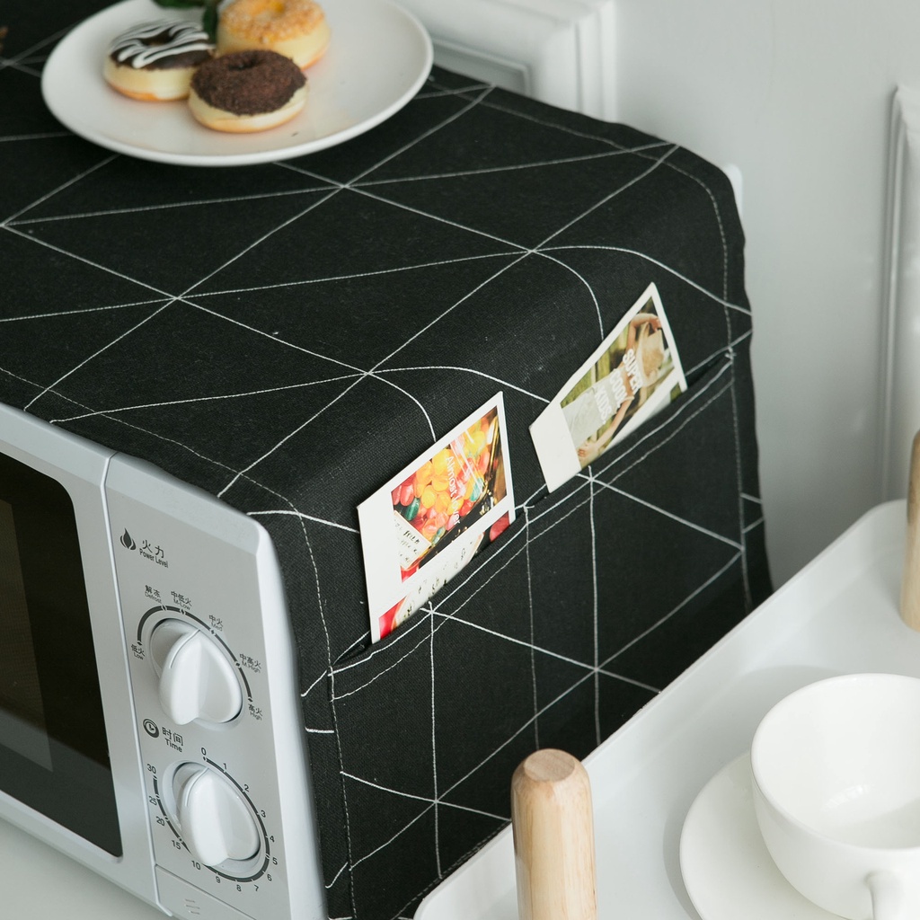 30x90cm Microwave Cover Cloth Black and White Geometry Microwave Oven Cover Cloth Dustproof Cloth Cotton Hemp Material Storable Dust Cover for Household Appliances Kitchen Decoration