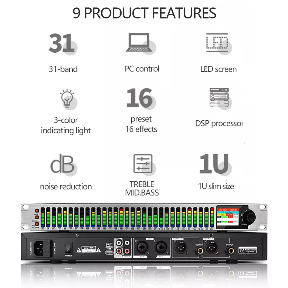 31 Band Stereo Graphic DSP Professional Digital Audio Equalizer DJ Effect Equalizador Studio Recording Equipment Sound Equalizer