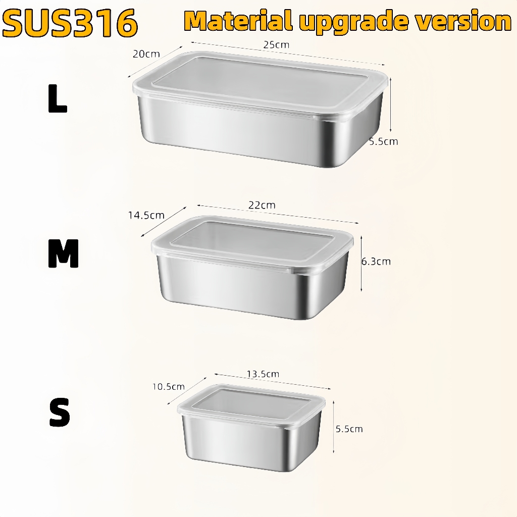 304 Stainless Steel Food Container with Cover Japanese Stainless Steel Tray Food Storage box with a lid household fresh-keeping box tray food storage container for adults