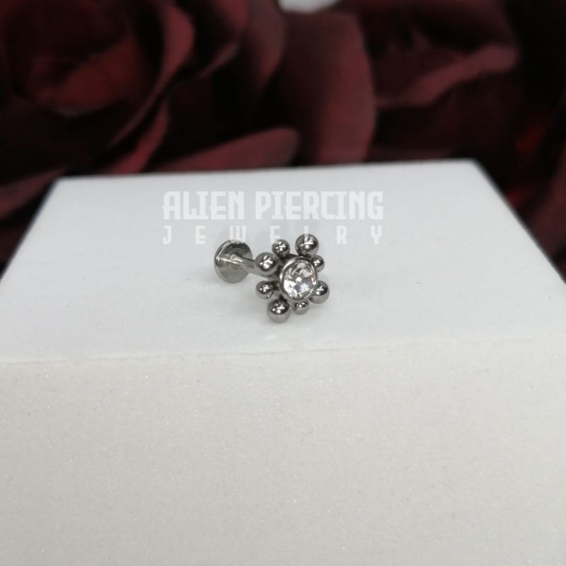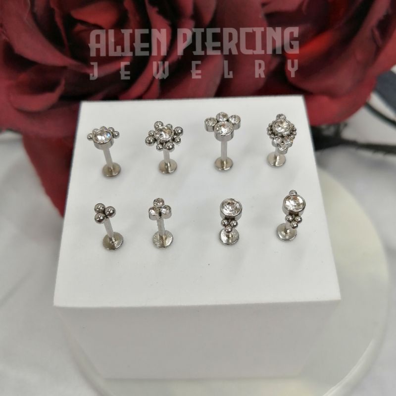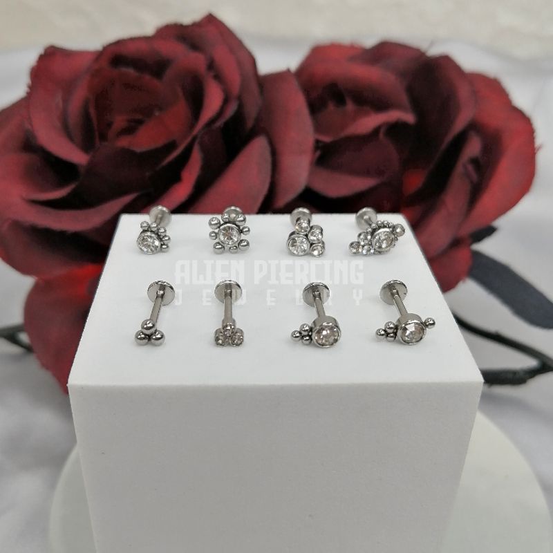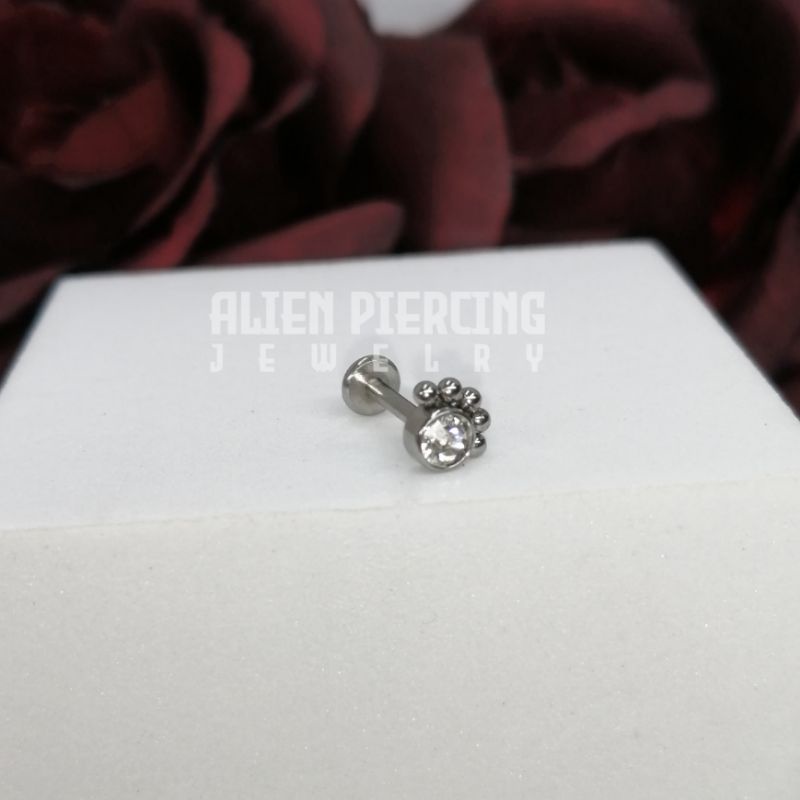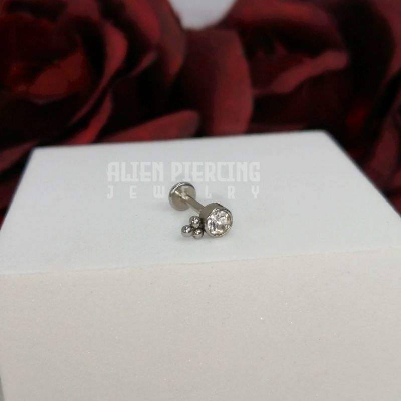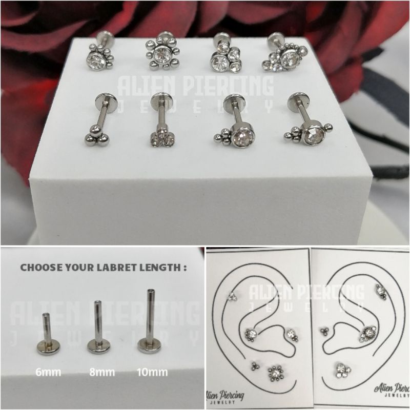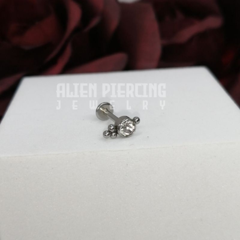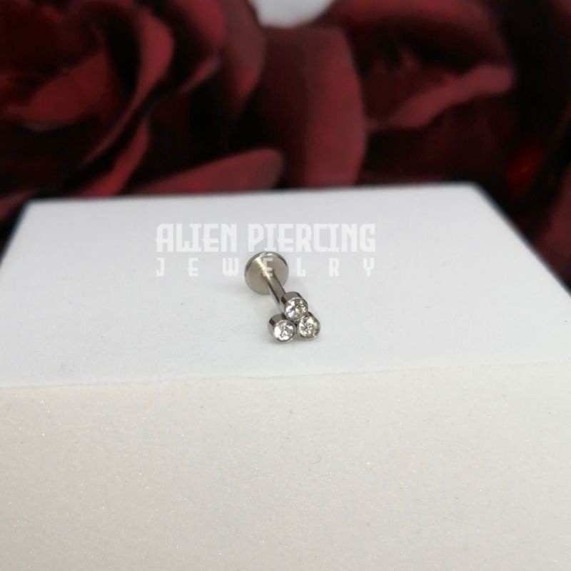 316L Surgical Steel Labret | Choose you Length / Trinity Ball & Gem Lobe Helix Conch Flat Tragus