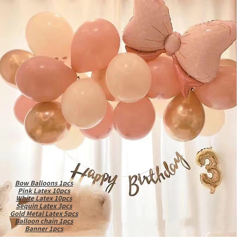 31pcs/set Pink Theme Minnie Mickey Mouse Bow-knot Foil Balloons Set Garland Arch Kit Party Decoration Party Needs