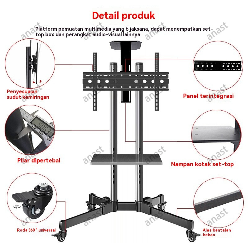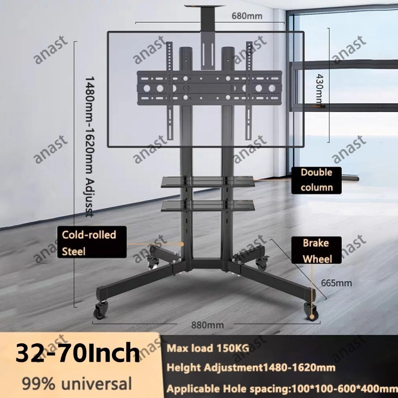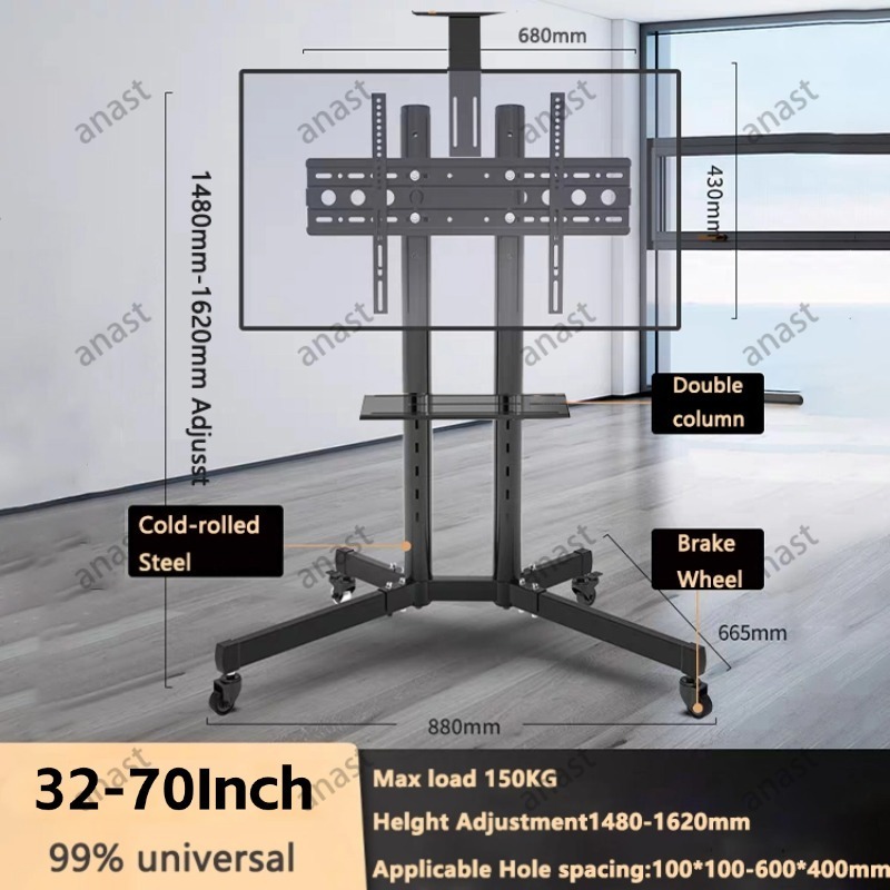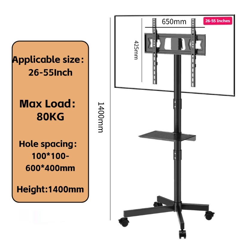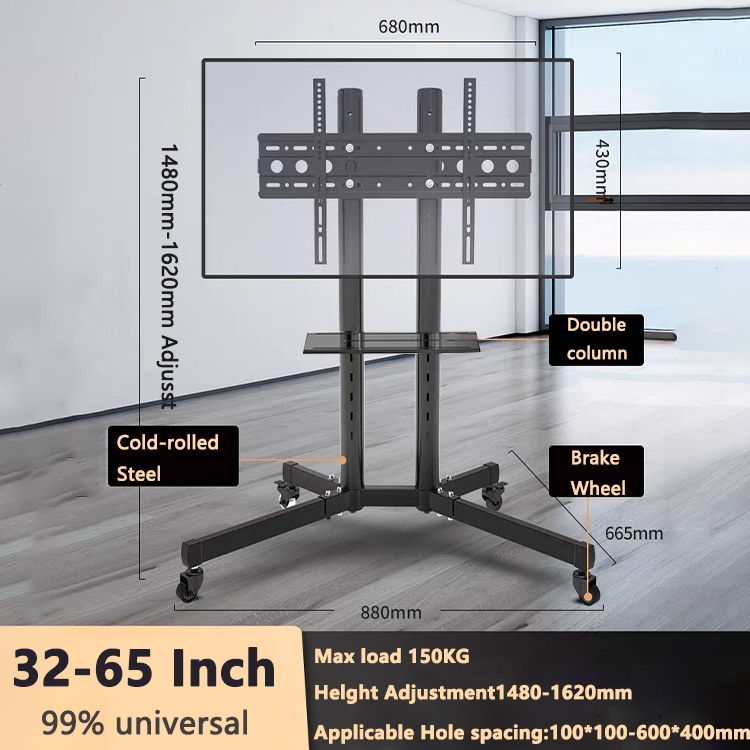 32-65 Inch Mobile TV Stand Monitor Screen Universal TV Bracket With Wheel And Tray