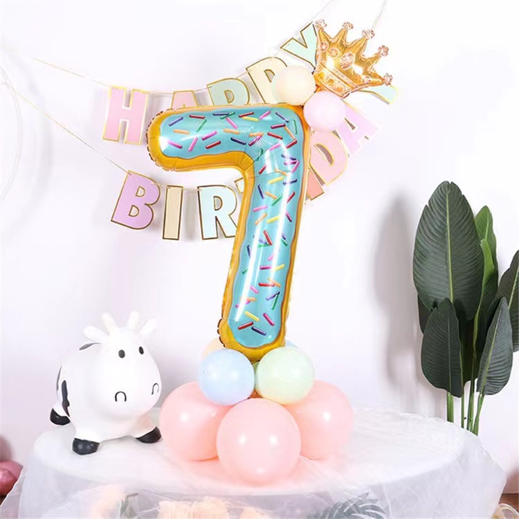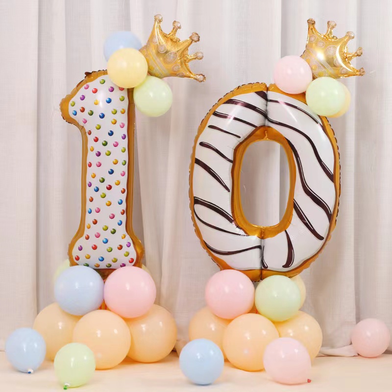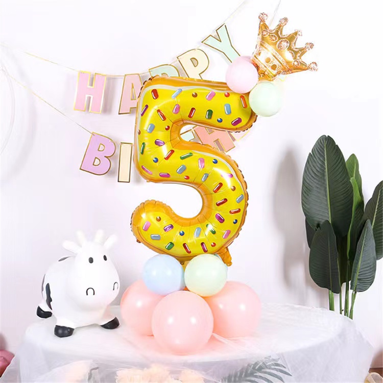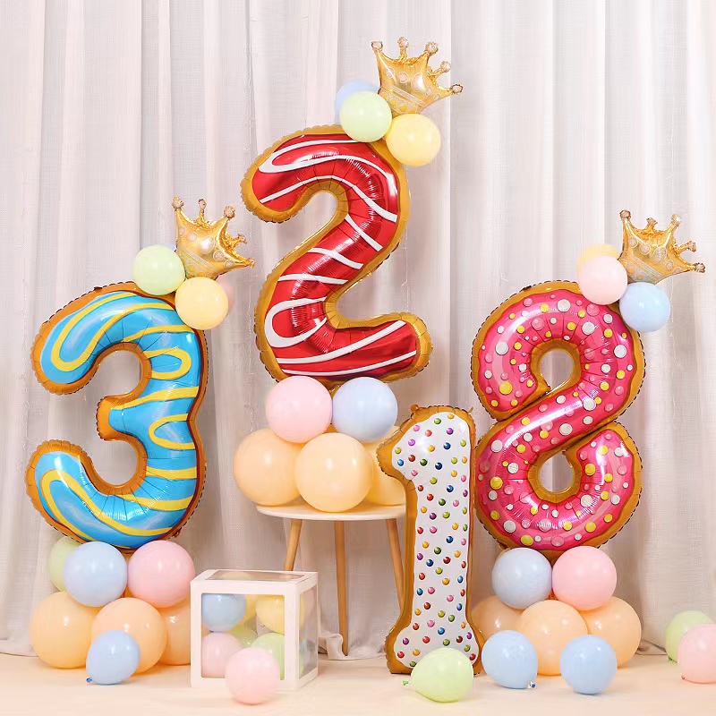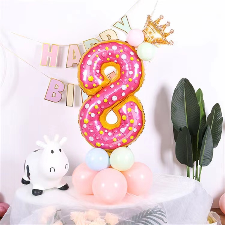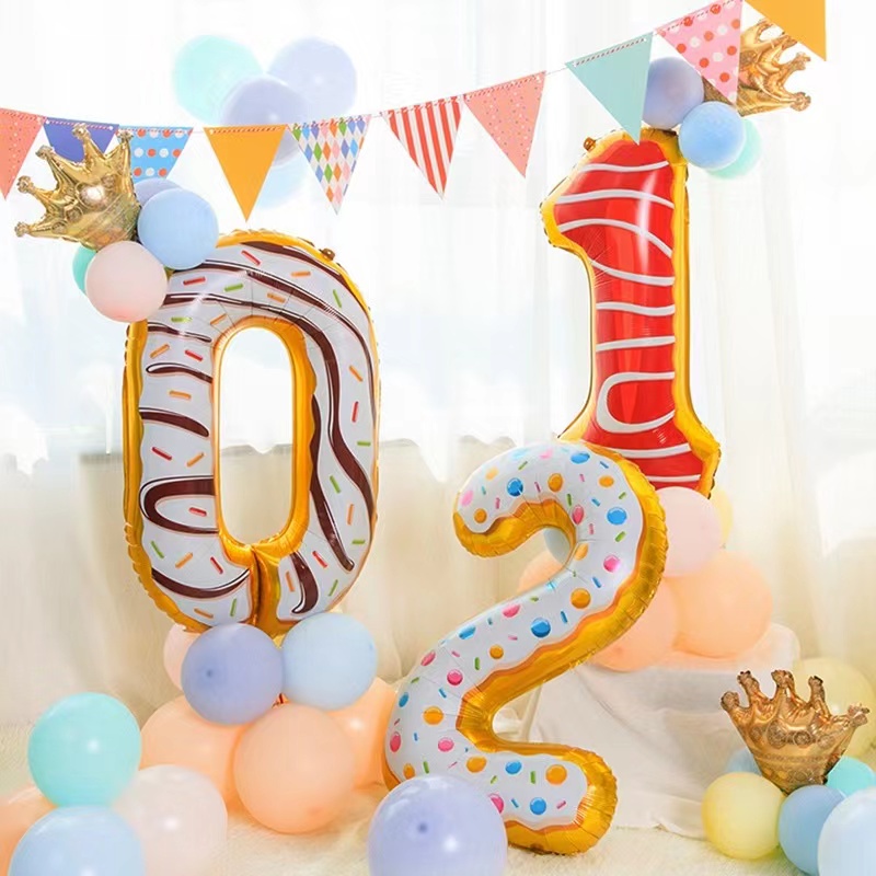 32 Inch Donut Number Foil Balloon Candy Number Dessert Doughnut Theme Doughnut Design
