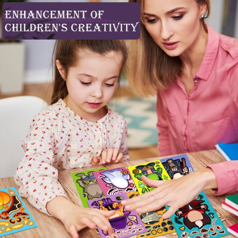 32 Sheets Halloween Stickers for Kids Make a Face Halloween Characters Stickers Halloween Kids Party Favors Crafts Game Activities Supplies