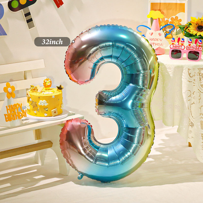 32 inch Number balloon Foil Digital Aluminum Film Balloon Kids 1 to 7 Set Children's Birthday Party