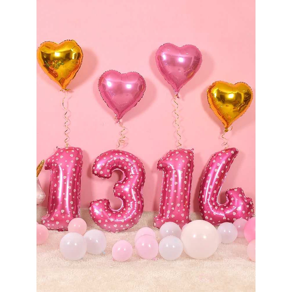 32 inches Pink colour with heart shape design number 0 - 9 party decorations aluminum foil balloon