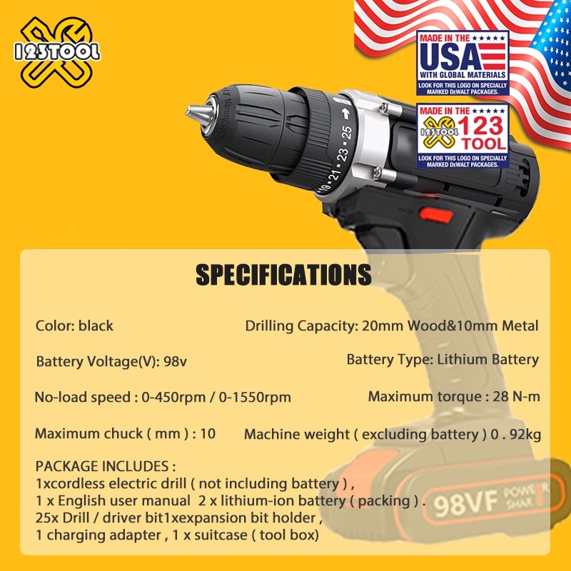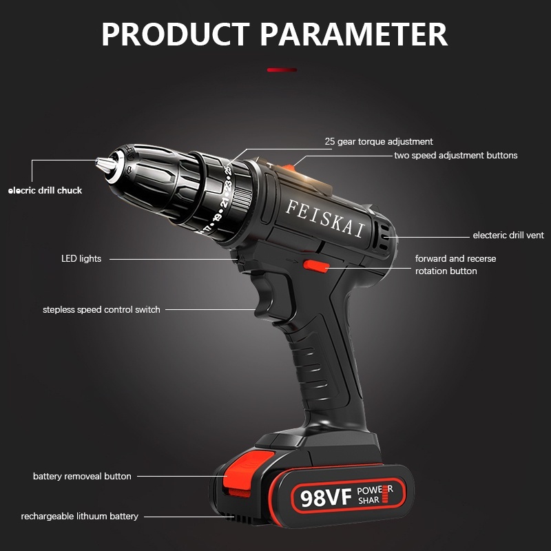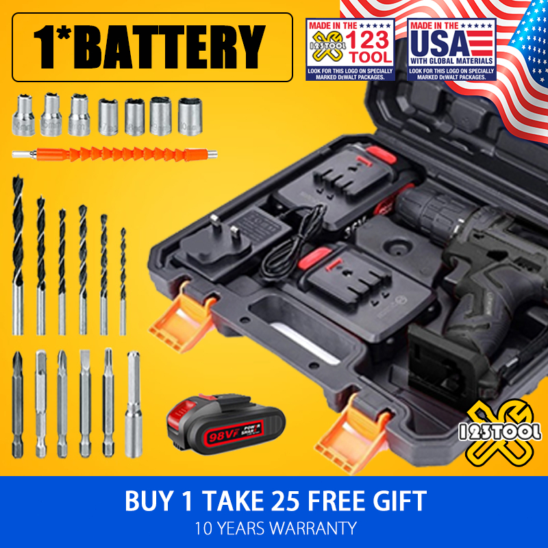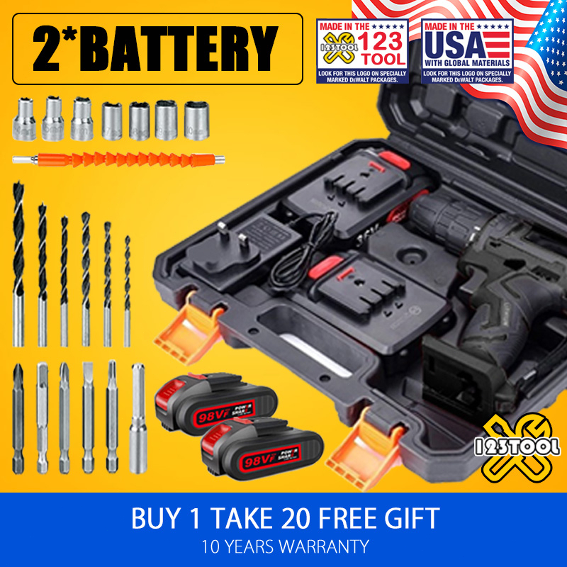 32 pcs set 998V Impact Drill Set Cordless Hand Drill Set Electric Screwdriver Drill bits Battery