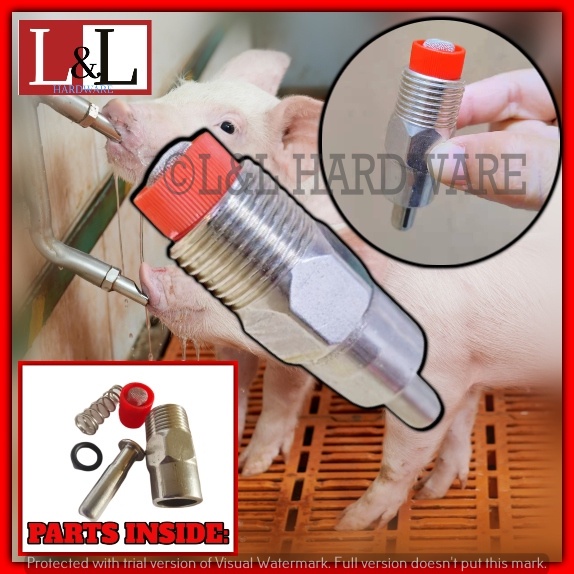 3207 1PCS Stainless Steel Automatic Pig Drinker Waterer Red Cap Duckbilled Pig Swine Livestock