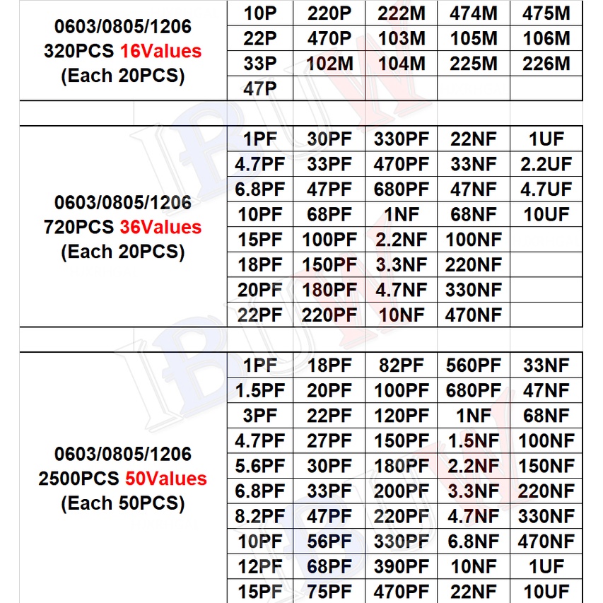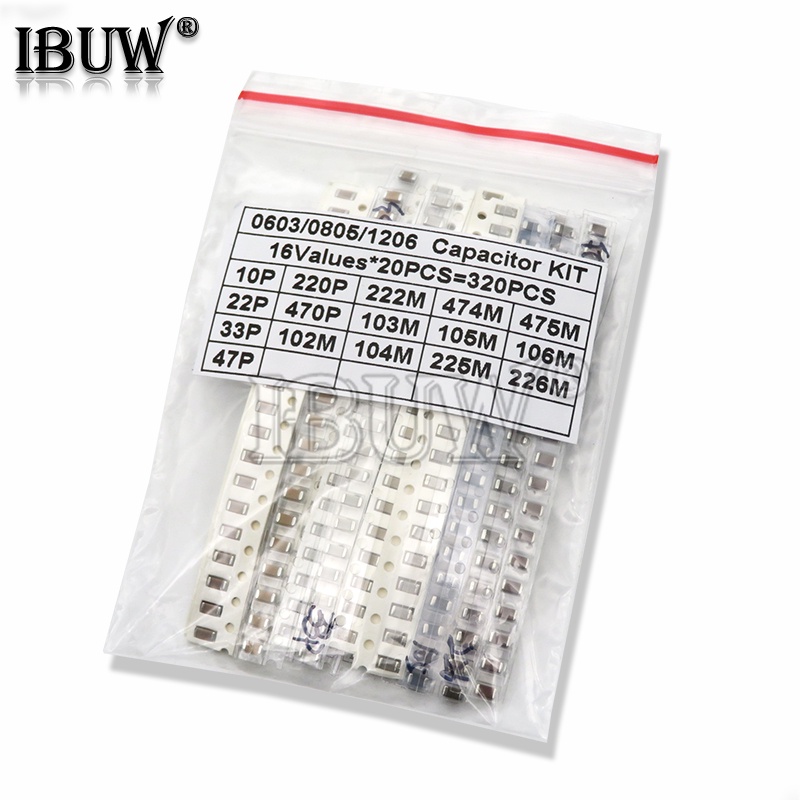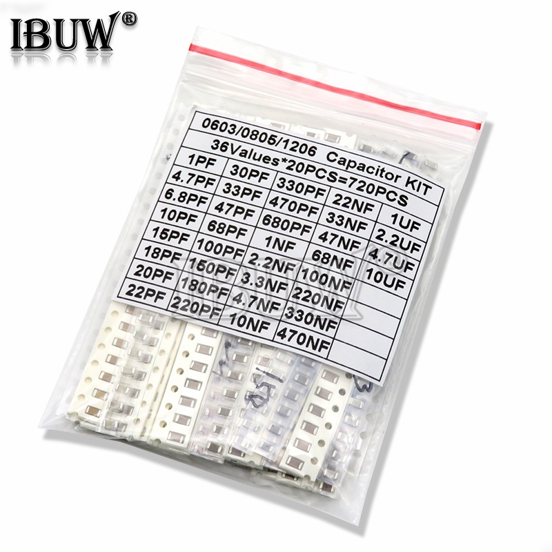 320PCS 720PCS 2500PCS 0603 0805 1206 SMD Capacitor Kit igmopnrq Assorted Kit 16/36/50Values ibuw 1PF ~ 1UF