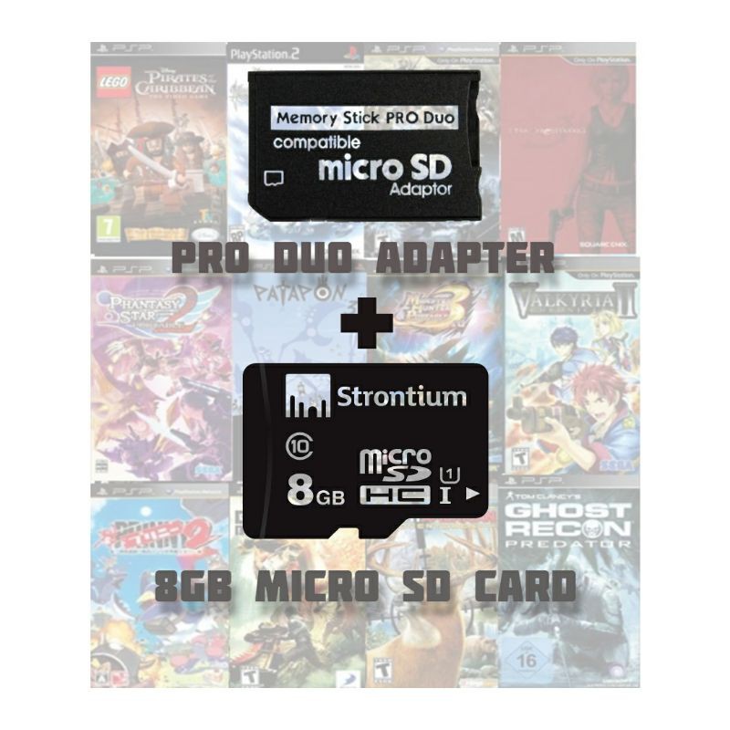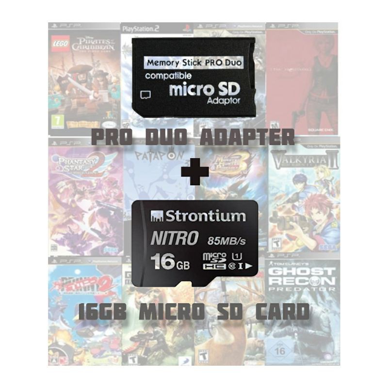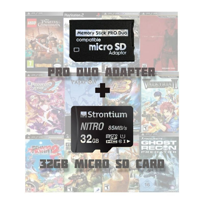 32GB Micro SD MEMORY CARD full of PSP Games and Pro Duo Adapter