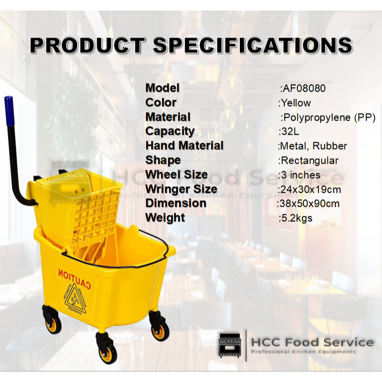 32L Mop squeezer Bucket w/ Wringer and Casters for Janitorial Use Heavy Duty High Quality Plastic