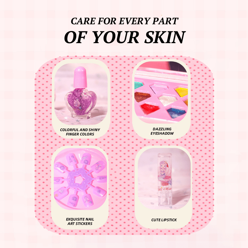 32PCS Kids Makeup Toys Girls Real Makeup Kit Washable Non-toxic Makeup Toy Set Retro Beauty Makeup