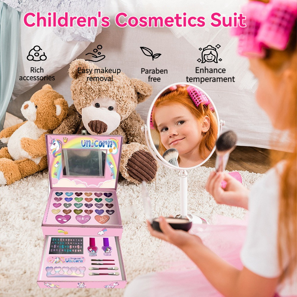 83PCS Kids Makeup Toys 3 in 1 Girls Real Makeup Kit Washable Non-toxic Makeup Toy Gift Set Retro