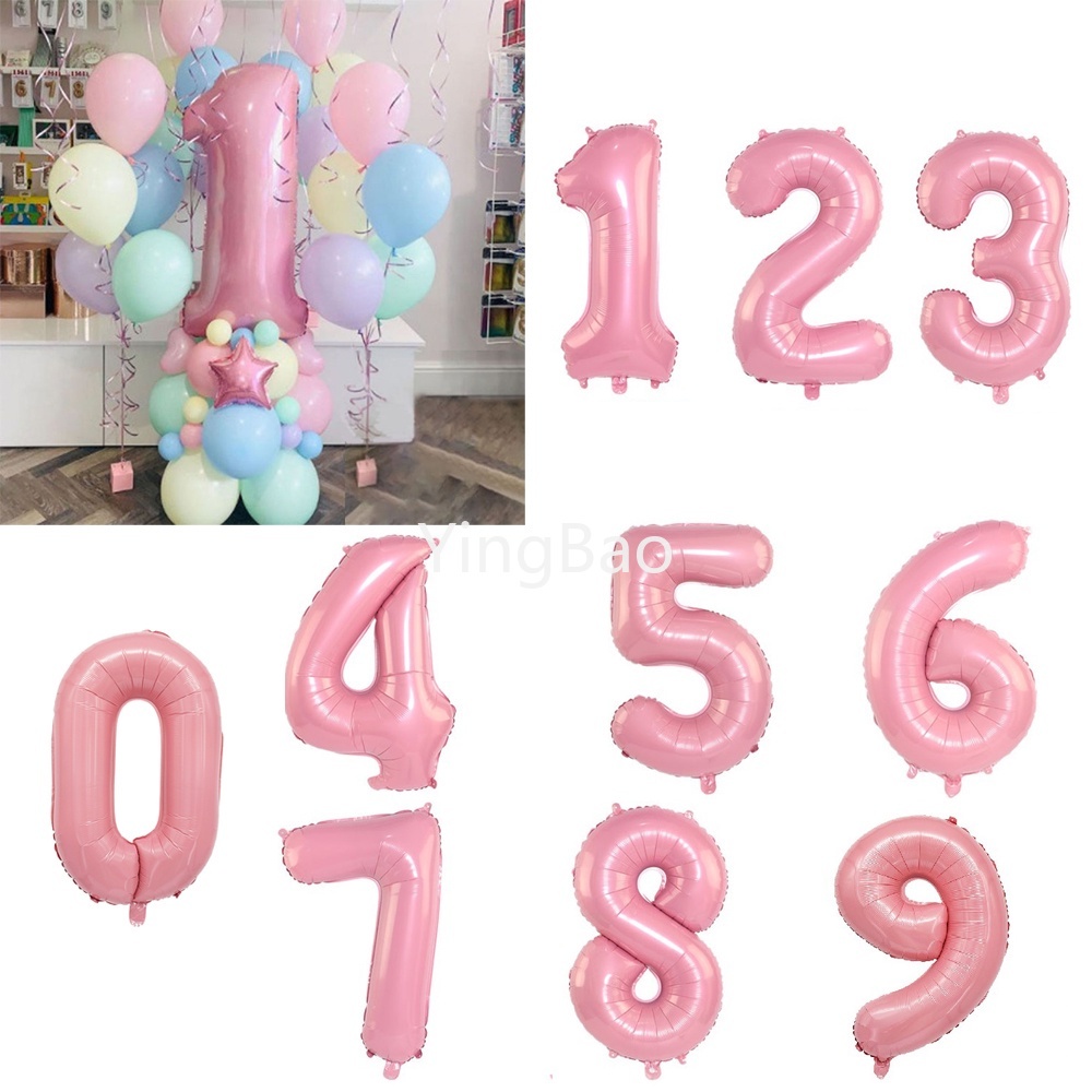 32inch Pearl Pink Foil Number 0 1 2 3 4 5 6 7 8 9 Balloons for Kids Girls Birthday Party Decorations