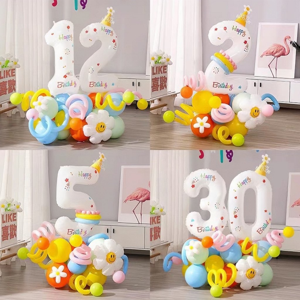 36PCS Daisy Number Set 32inch White Numbers 0 to 9 Foil Balloons Birthday Party Theme DIY Decoration