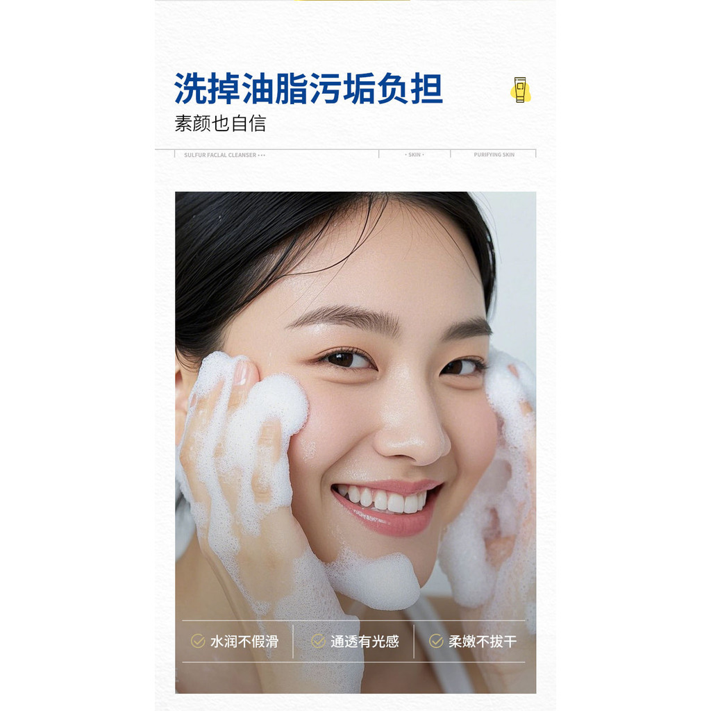 Sulfur Cleansing Moisturizing Brightening Facial Cleanser Deep Cleansing Pores Lubricating Skin Brightening Skin Tone Moisturizing Foam Cleanser 1.8