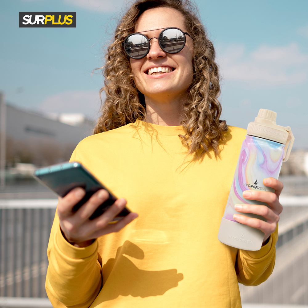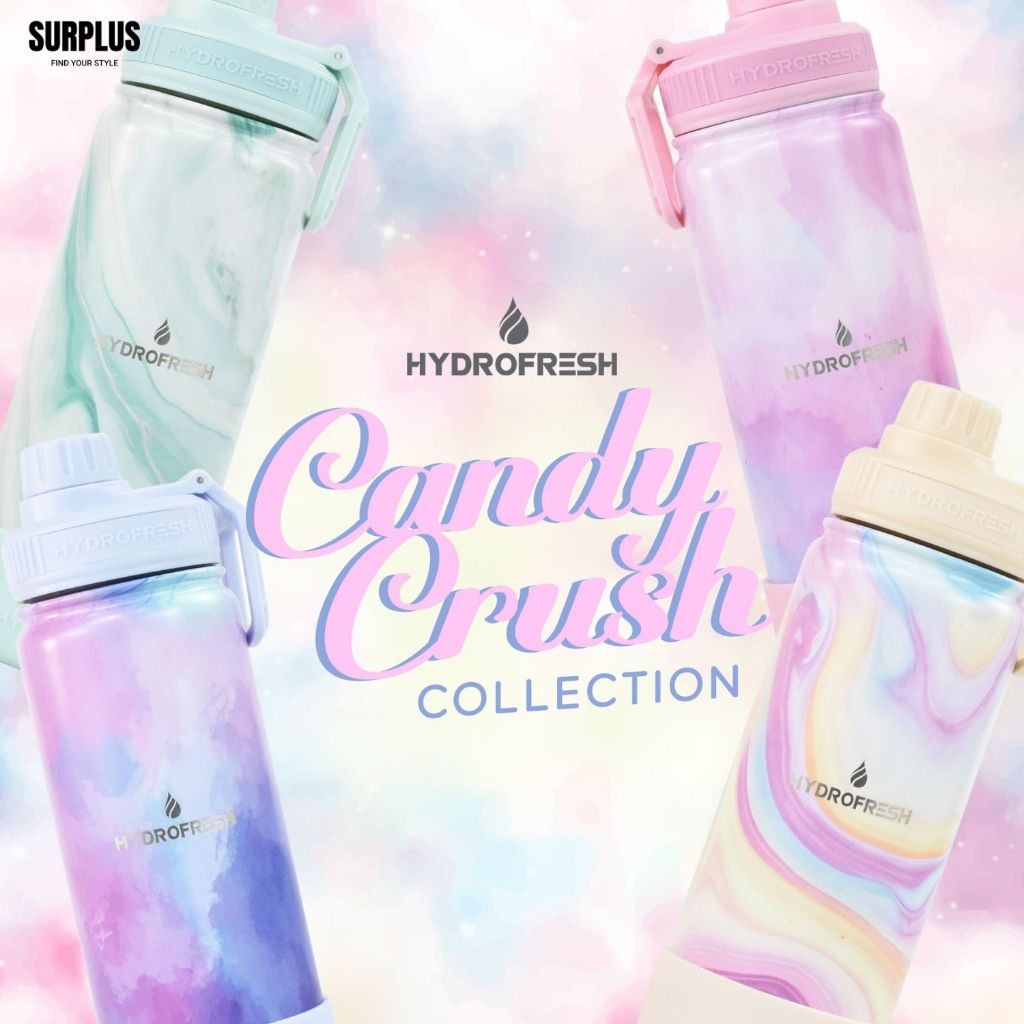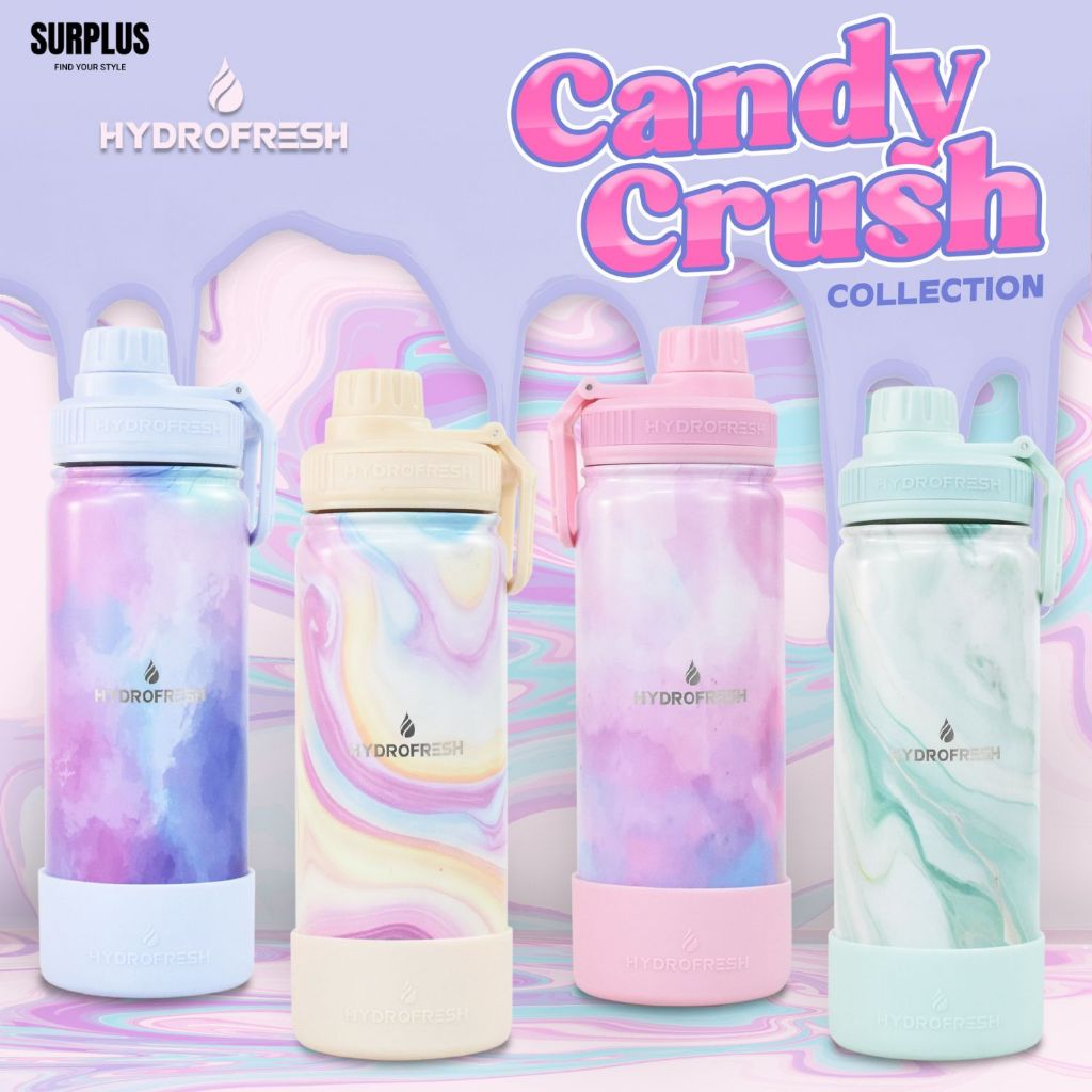 Surplus Kids Hydrofresh Stainless Steel Tumbler Sporty Handle 532mL With Silicon Boot Candy Crush