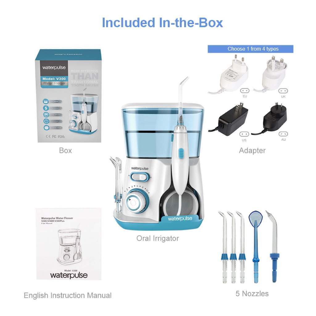 Waterpulse V300 Oral Irrigator Water Dental Flosser With 5 Jet tips 800ml 10 Mode Teeth Cleaning Or